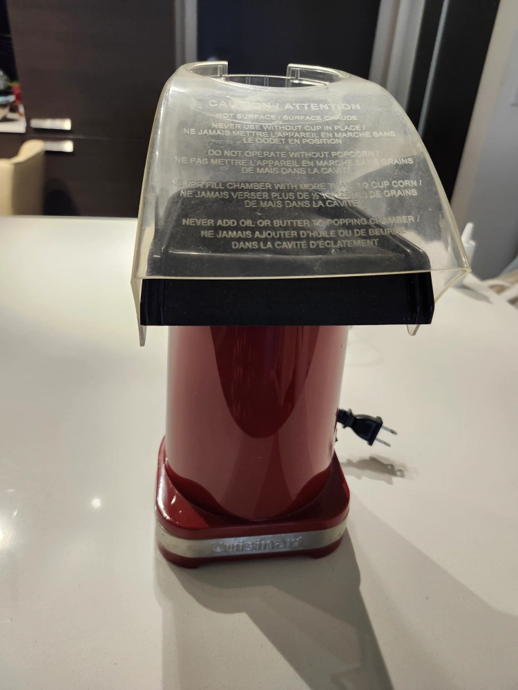 Here's a popcorn machine that I'm looking to rehome. It's in great condition and ready to make some delicious popcorn for movie nights or any time you're craving a tasty snack!