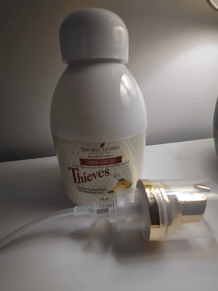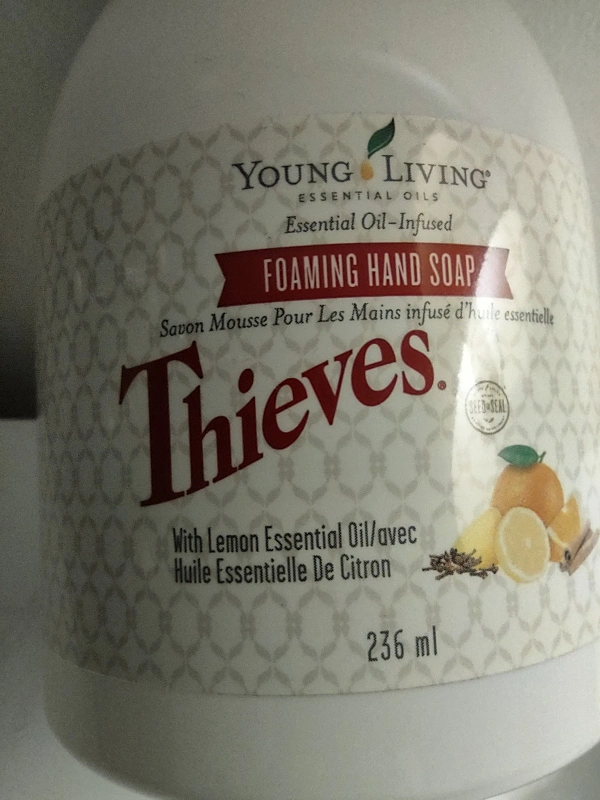 Selling a bottle of Young Living Thieves foaming hand soap. It's infused with essential oils and lemon, and contains 236 ml of soap