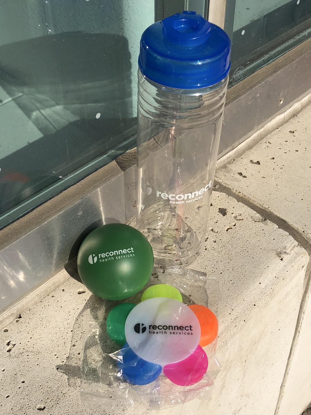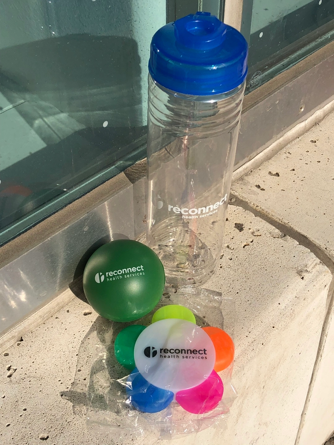 This is a brand new flower shape highlighter, water bottle and green stress ball, perfect for back to school & anyone in need of hydration and stress relief.