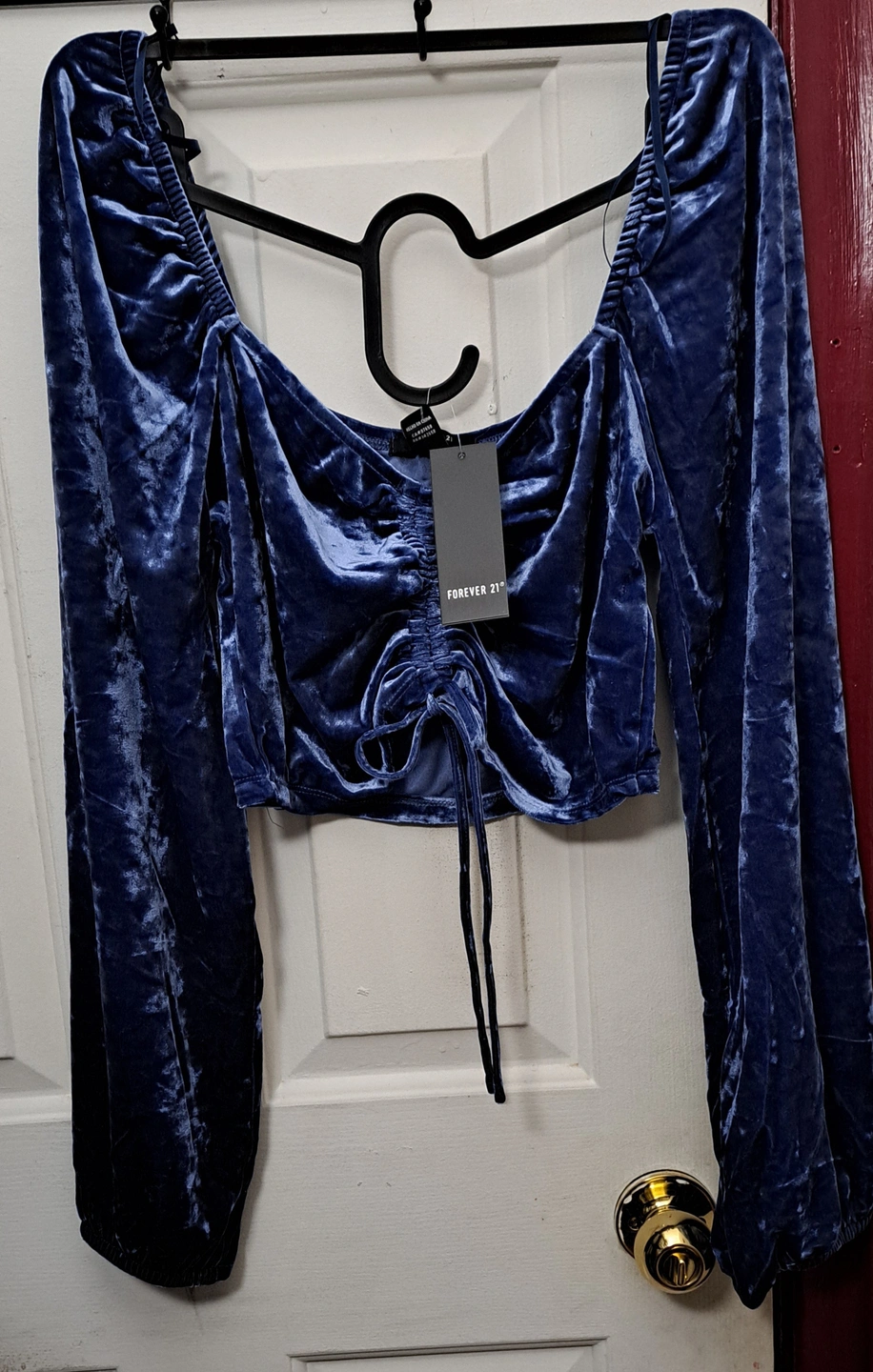 New Forever 21 Trendy Velvet Women's Cropped Top Blue