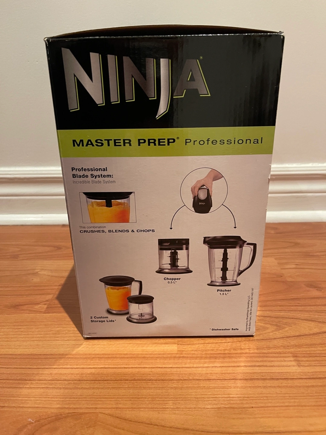 Selling a Ninja Master Prep Professional. Brand new in box! Never been used. - Professional Blade System - Chops, blends, and crushes - Includes a 0.5L chopper and a 1.5L pitcher - Dishwasher safe