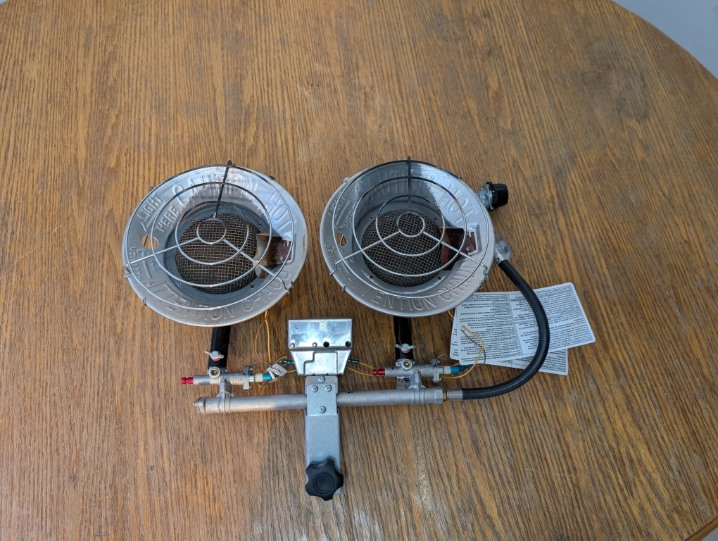 Selling a Remington propane tank top heater, model REM-32-TTCF. It features three heat output settings and doesn't require electricity. It also has a safety tip-over switch and a quick tank connect Great for outdoor camping.