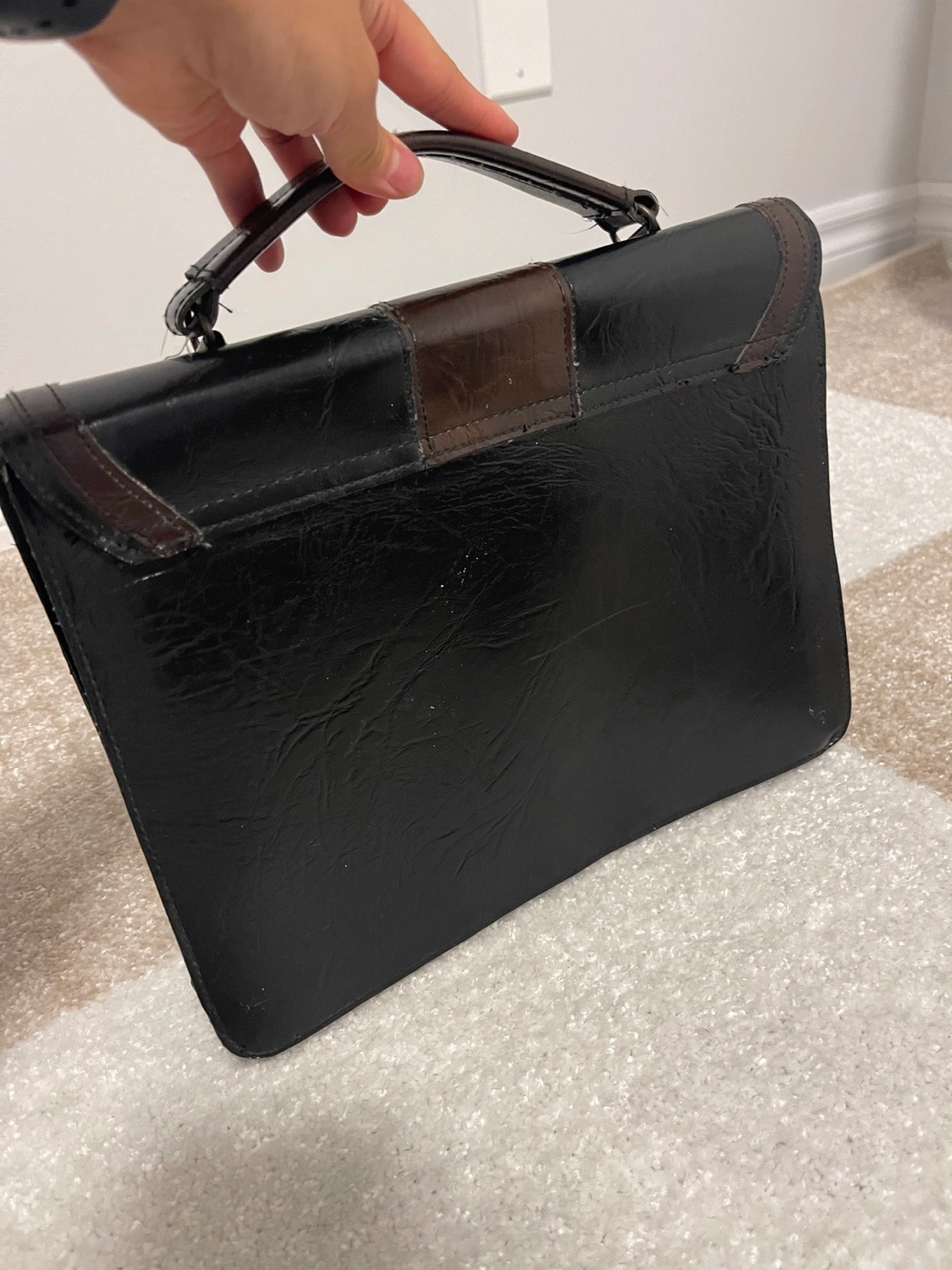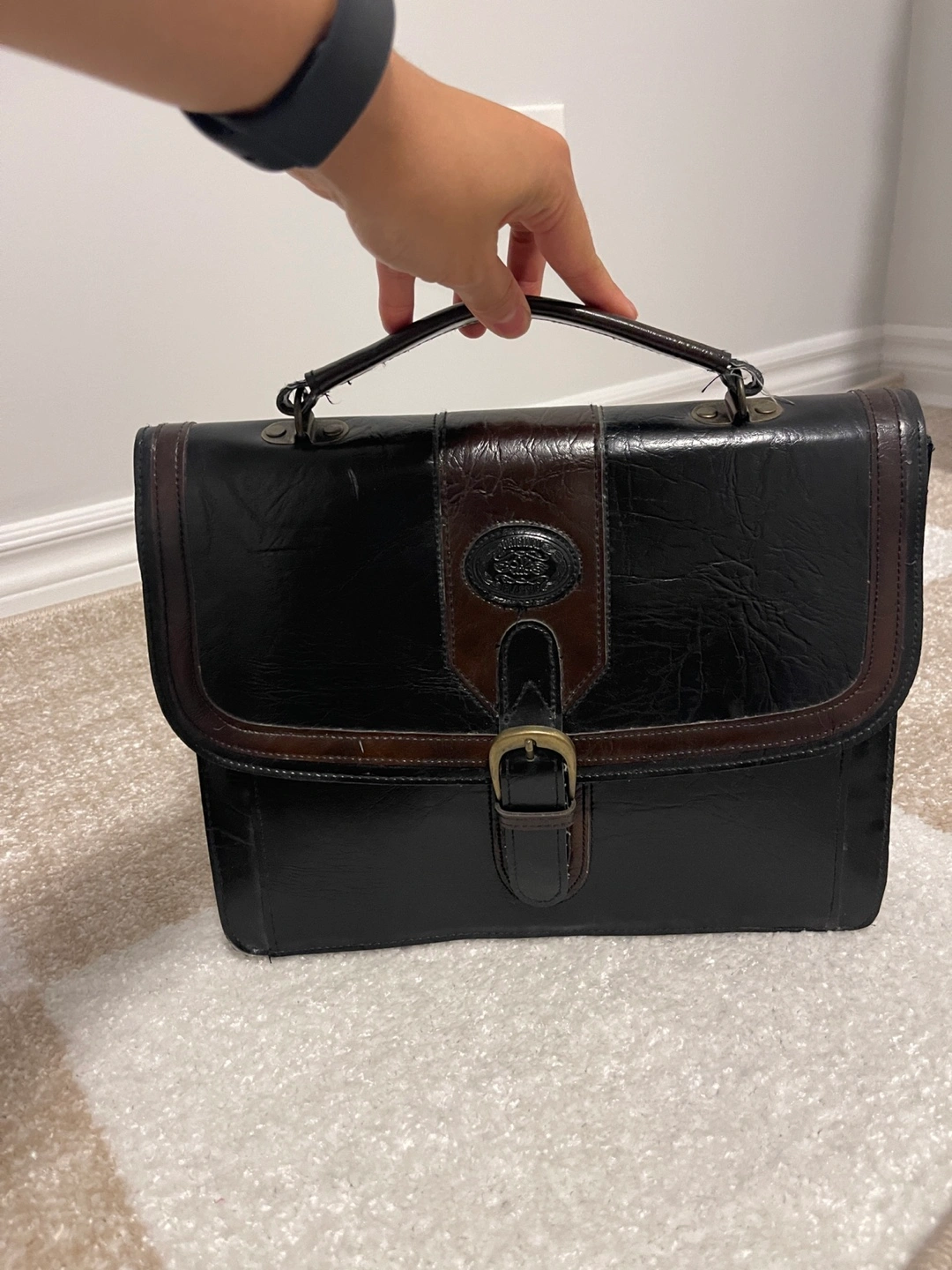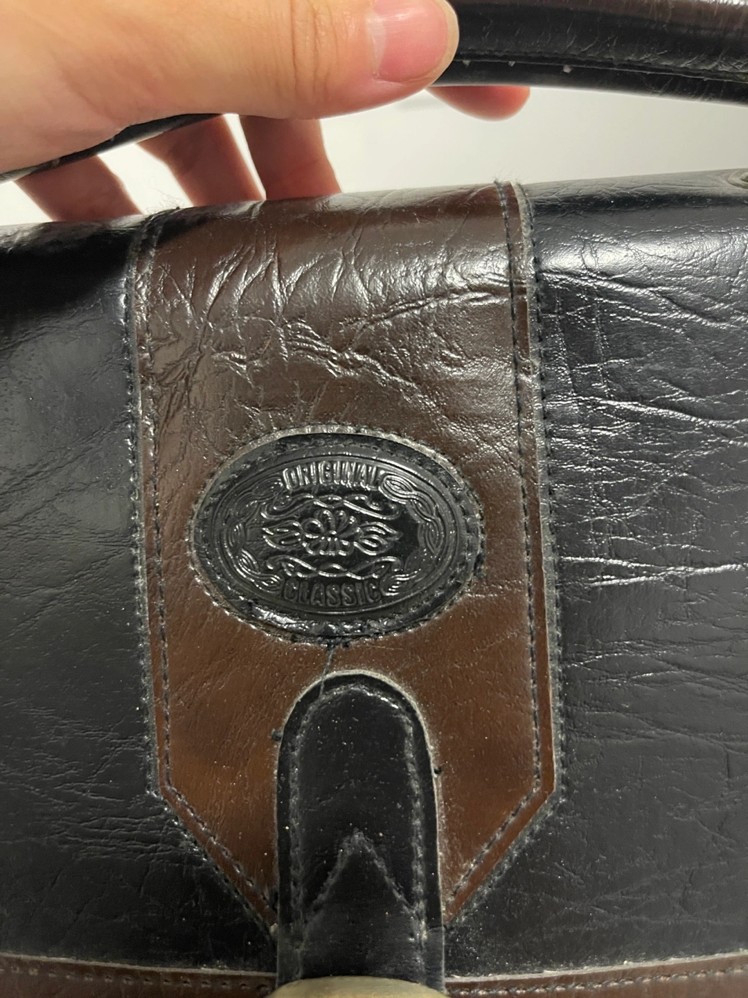 Selling a vintage Classic briefcase. It features a black and brown design with interior compartments for organization. It's perfect for carrying documents and essentials in style