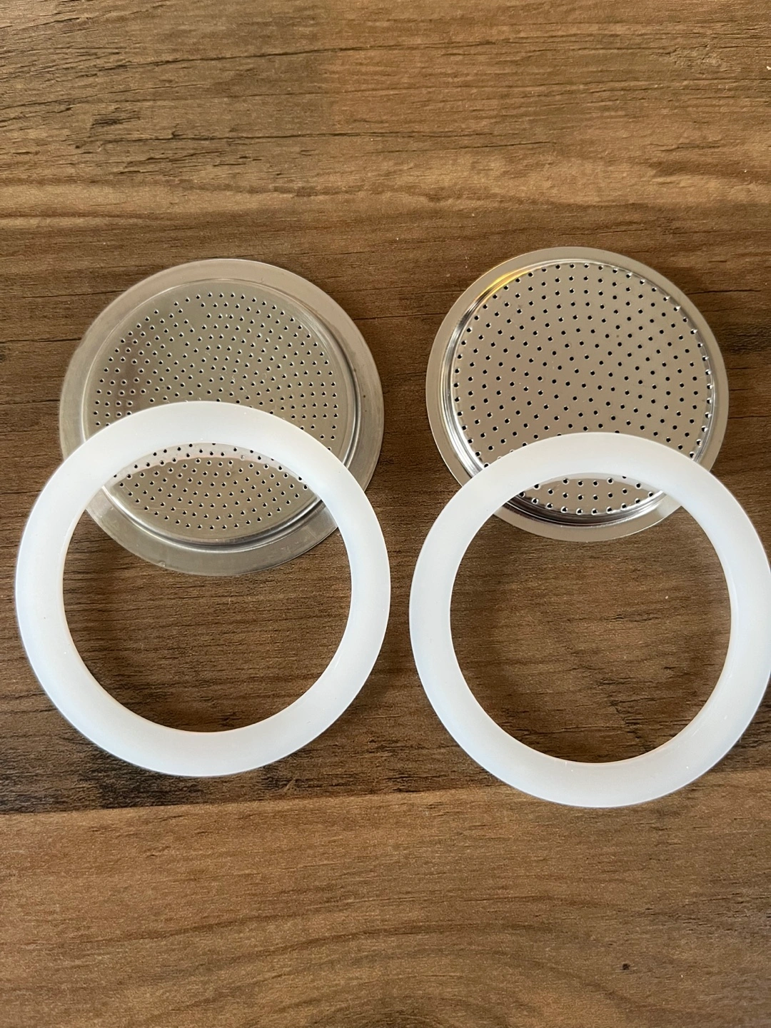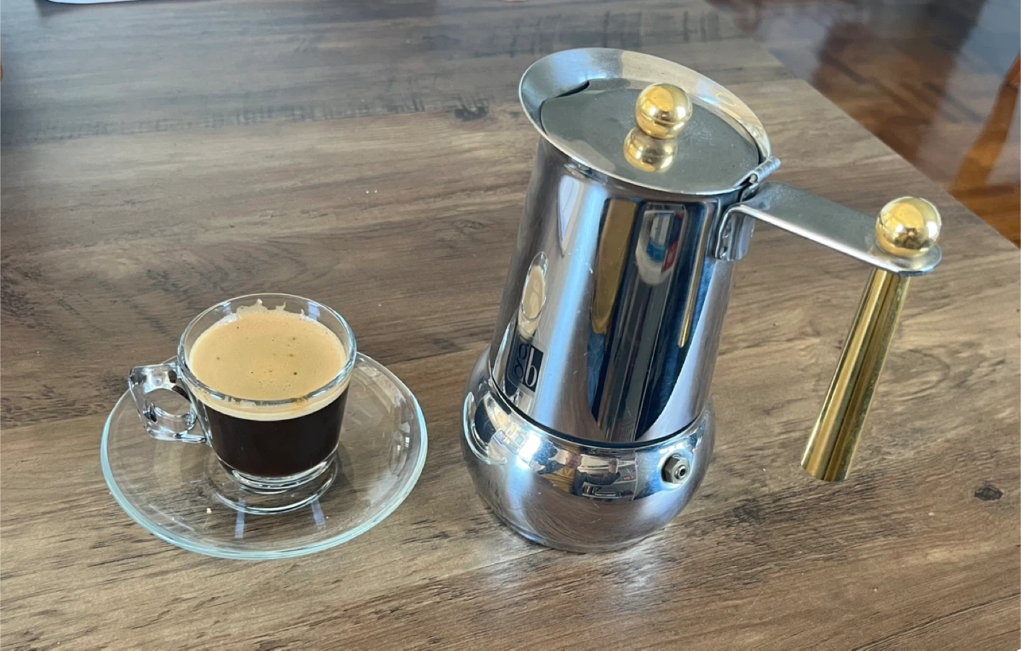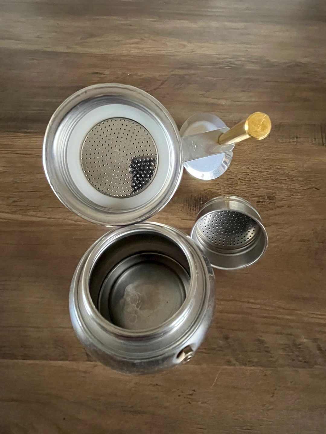 Selling a vintage Italian Espresso Maker. It's stainless steel with gold trim; a Kitty Oro design. Includes two extra gaskets and stainless steel filters.