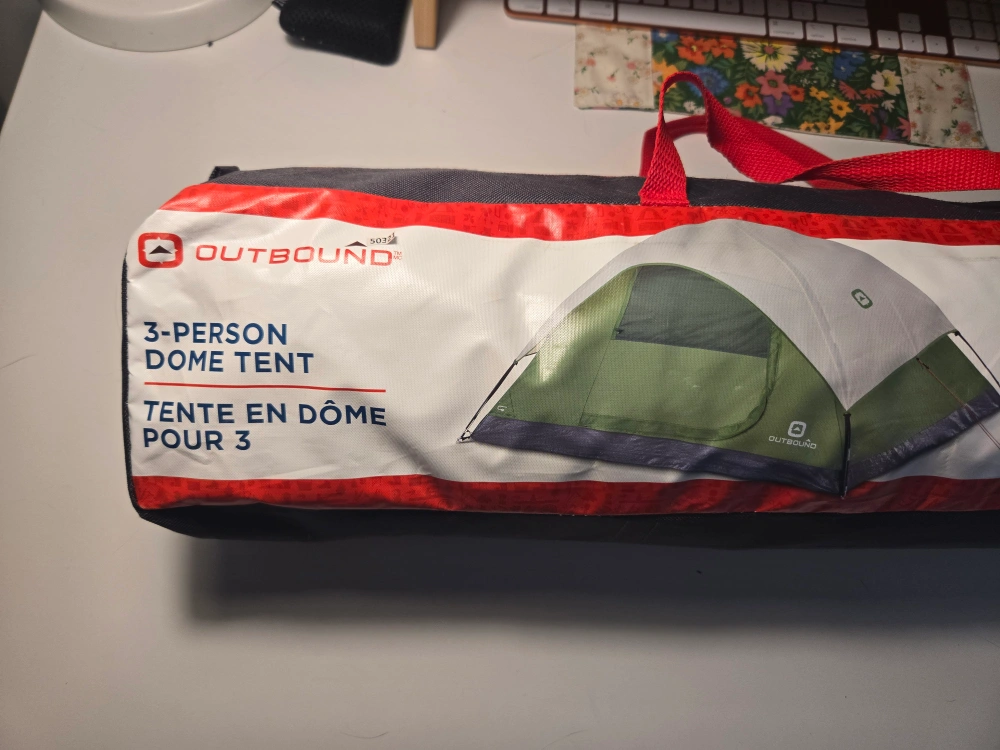Selling an lightly used Outbound 3-person dome tent! It's in great shape and ready for your next camping adventure. Key features: - Free-standing design and shock-corded frame for easy setup - Water-resistant 600 mm coated fabric, rain fly and zipper cover for added weather protection - Zip window and mesh panels for ventilation and bug protection Includes tent stakes, guy lines, carry bag and assembly instructions
