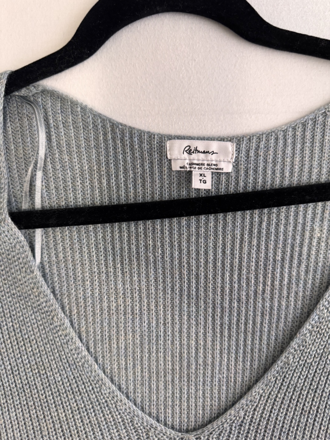 Cozy Reitmans sweater in size XL! It's a lovely cashmere blend, perfect for staying warm and stylish. The light grey colour is super versatile, too!
