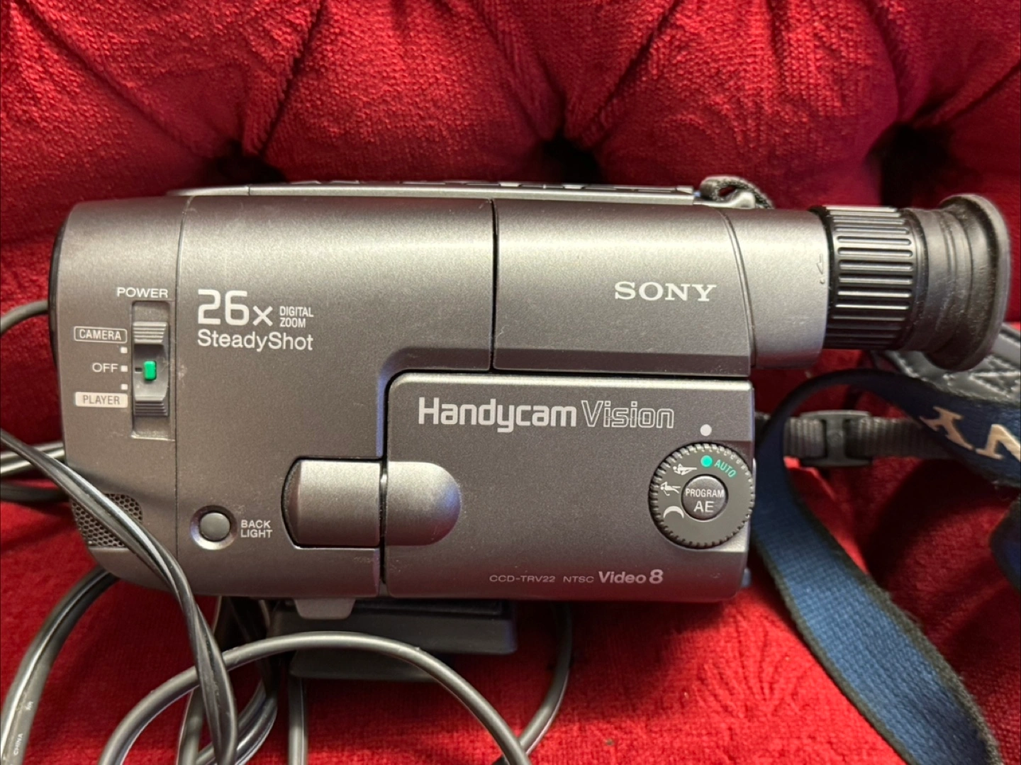 Selling a Sony Handycam Vision CCD-TRV22 Video8 camcorder. It features 26x digital zoom and SteadyShot for stable recording. It comes with the AC power adapter/charger and is ready to capture your memories!