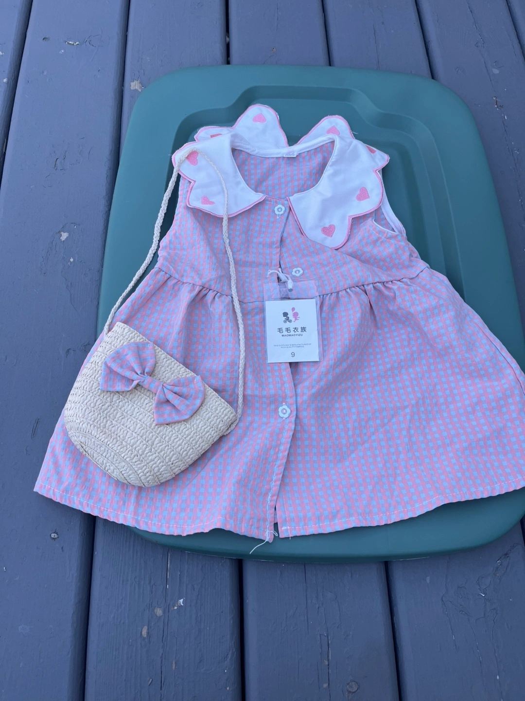 Super cute pink gingham dress with a matching purse for your little one! The dress features a sweet white collar with heart details. It's brand new and ready for a new home. Size 9(9-12 mths)