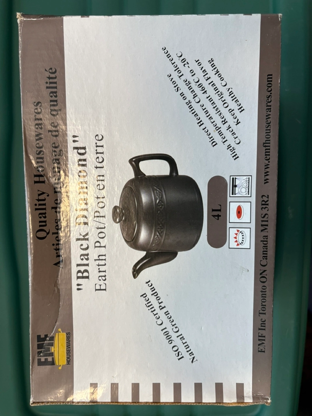 Selling a 4L EMF Housewares "Black Diamond" Earth Pot. This pot is great for healthy cooking and keeping the original flavour of your food. It's crack resistant from 460°C to -20°C, and can be used directly on the stove. The box is included!