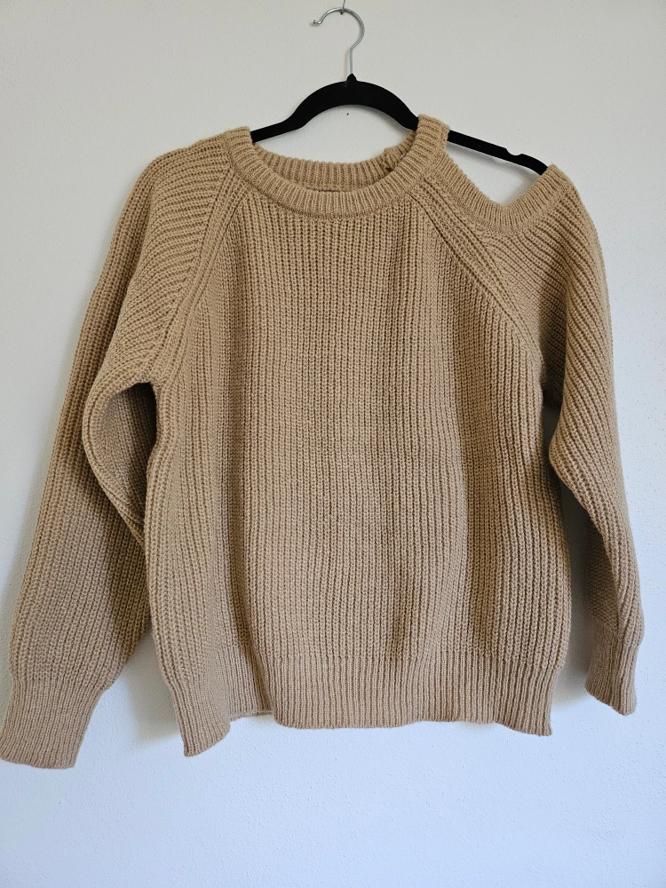 Selling a comfy beige knit sweater! It features a unique cut-out detail on one shoulder. Perfect for adding a bit of style to your everyday look. Brand new. #bangkokfashion