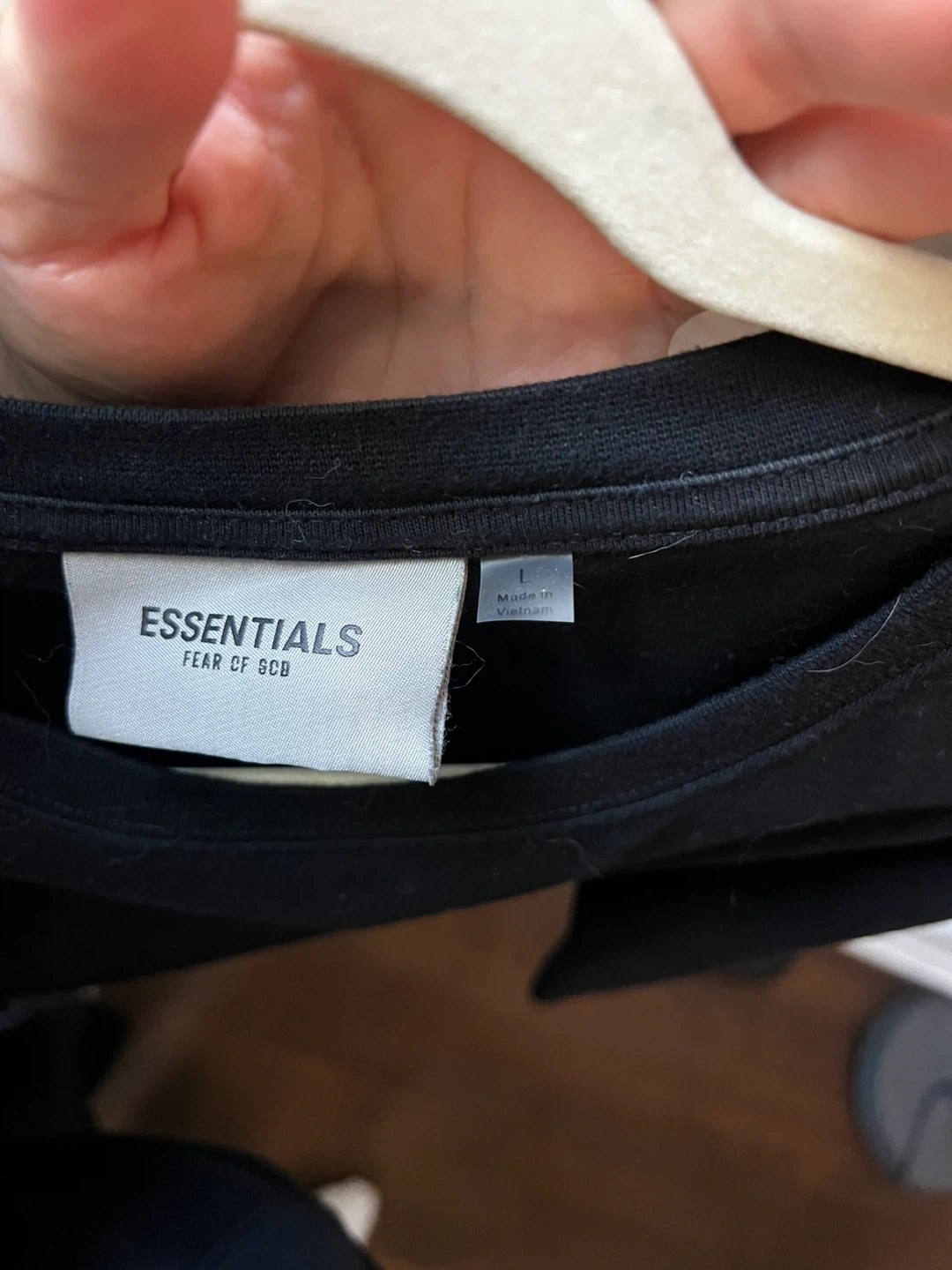 226I'm selling an Essentials Fear of God t-shirt in black. It's a size large. Great everyday shirt! I was aiming for an oversized fit but it didn’t look like I wanted so selling it. Only worn a couple times