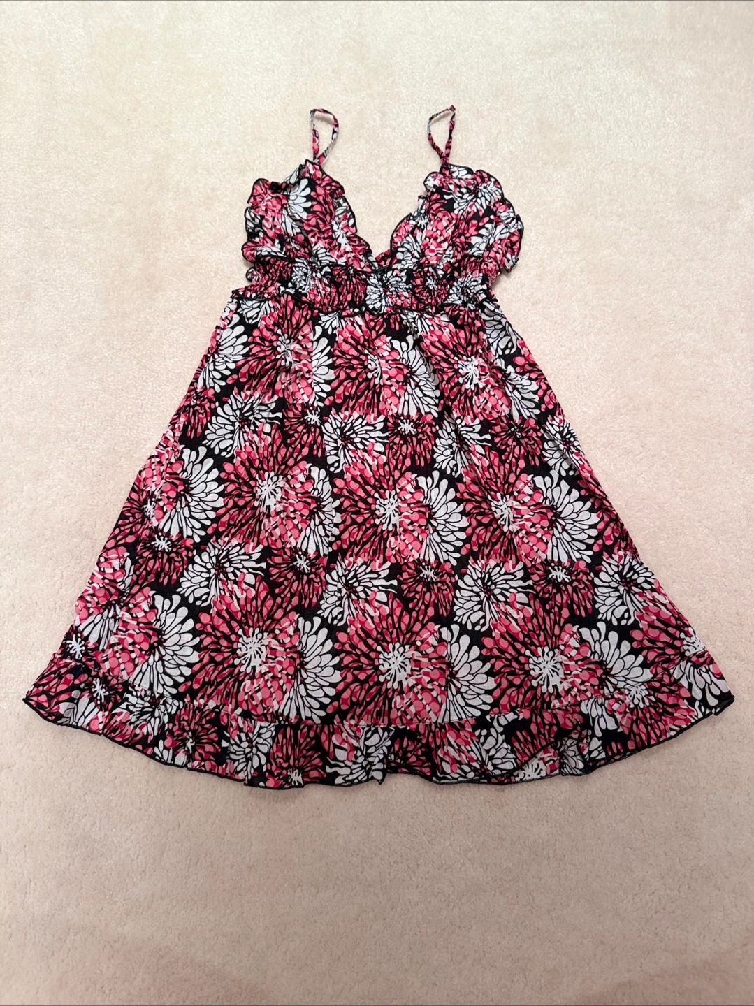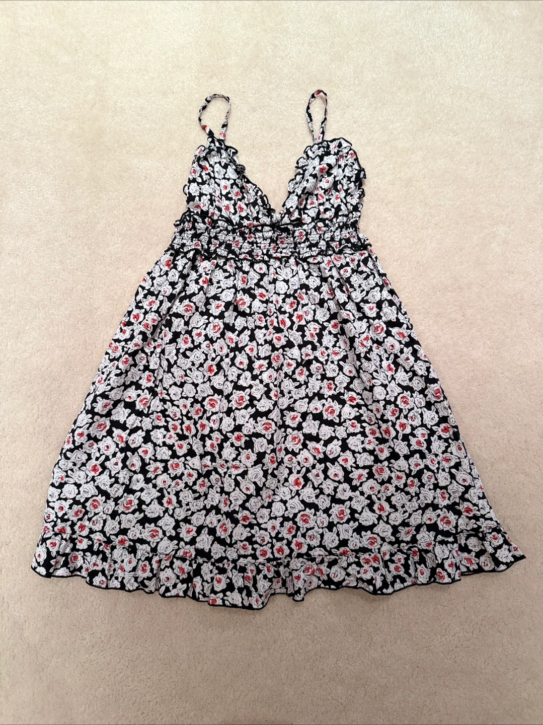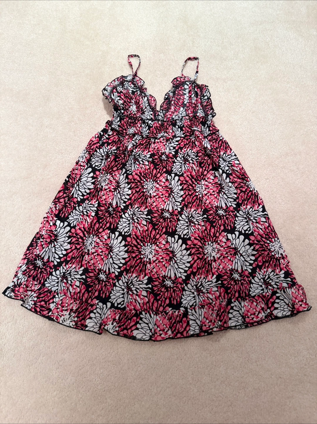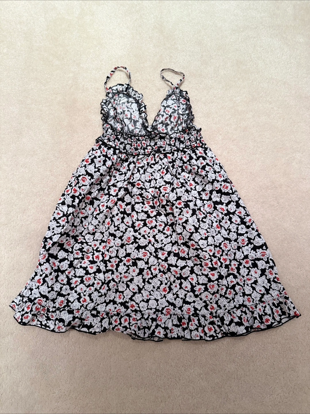 Cute floral print nightgown dress set with a black, white, and red pattern! They are comfortable and in great condition.