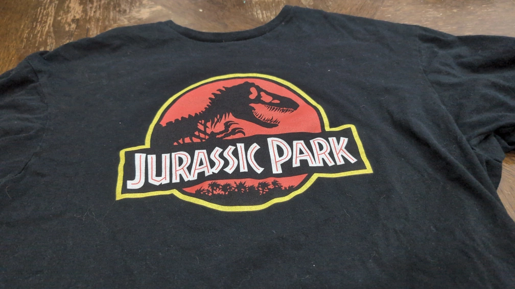 Selling a Jurassic Park T-Shirt. It features the classic Jurassic Park logo with the T-Rex. Perfect for any fan of the movies!