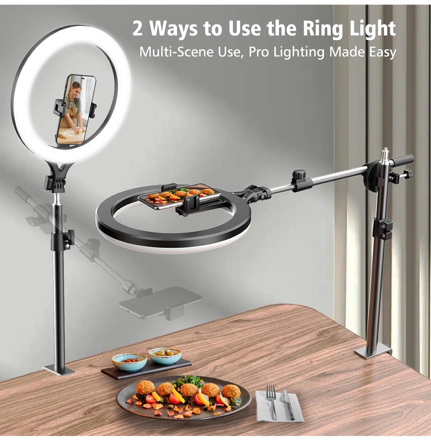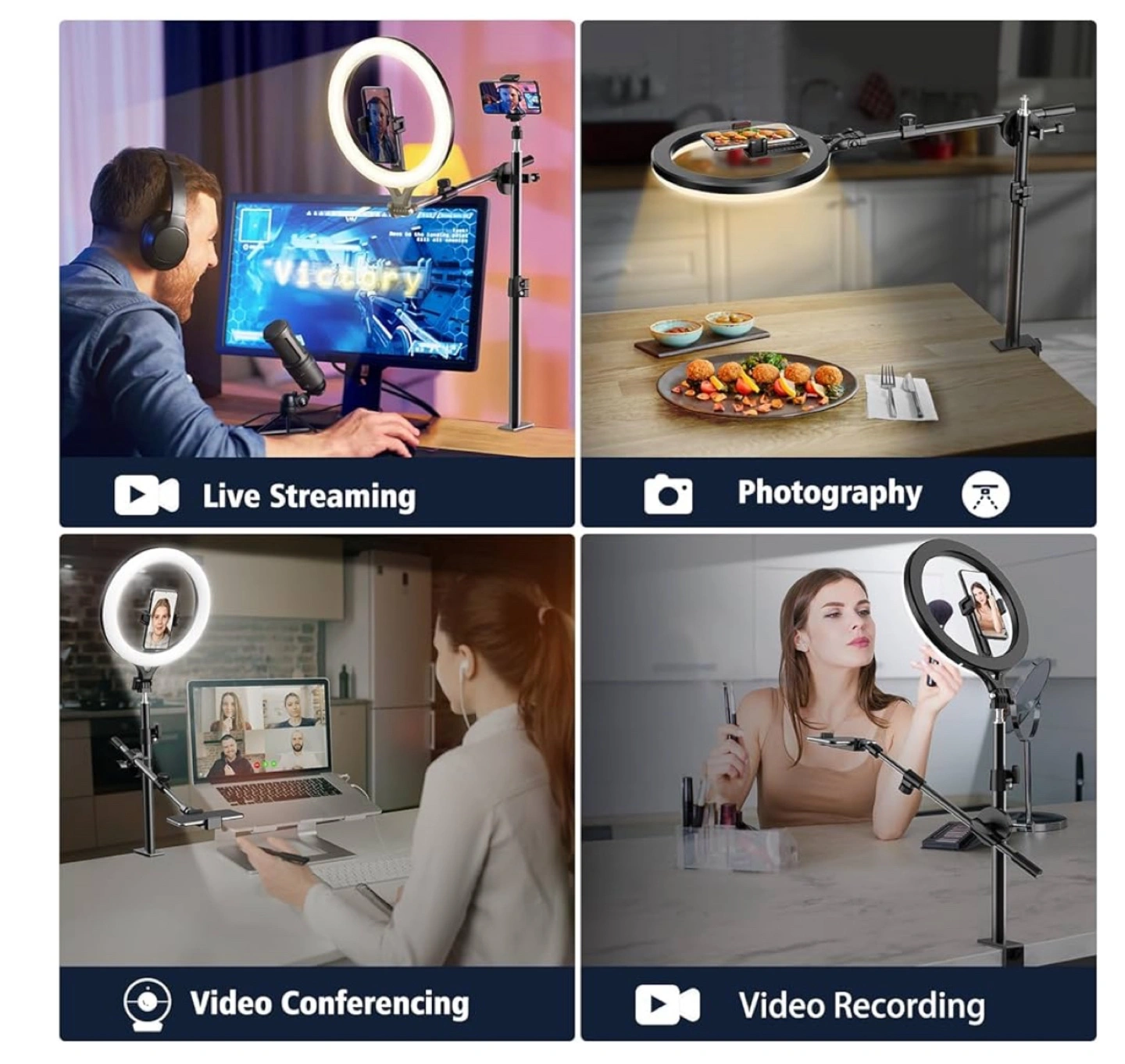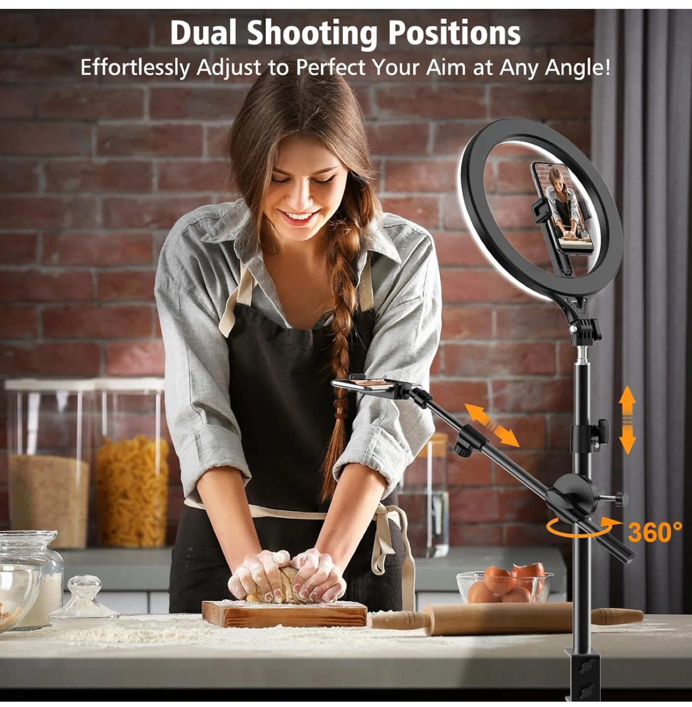 Luxsure 10” overhead ring light and phone holder.