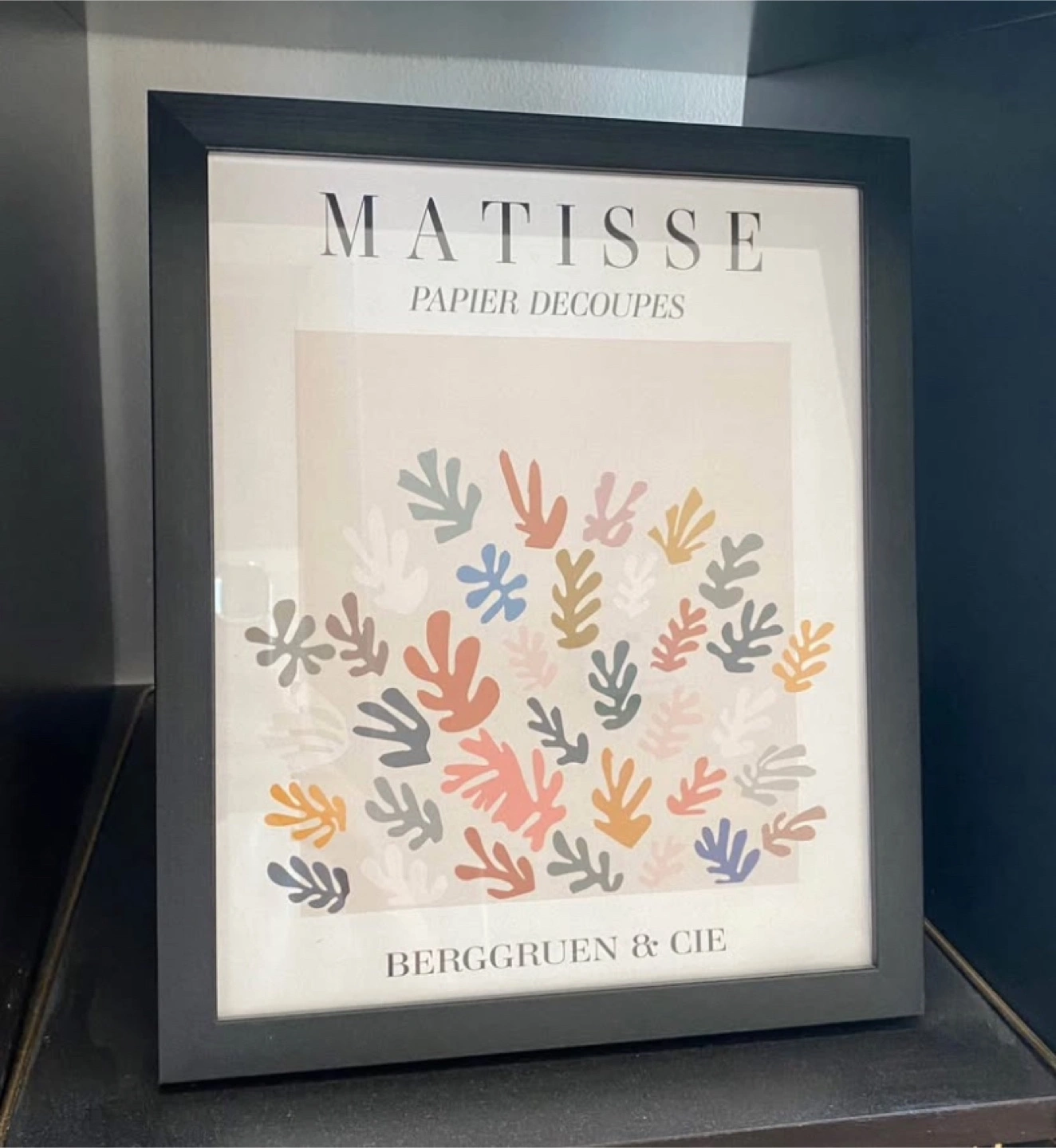 Selling a framed replica print featuring Matisse's 'Papier Decoupes'. It's a lovely piece to add a touch of art to any room. The print is in excellent condition and ready to hang