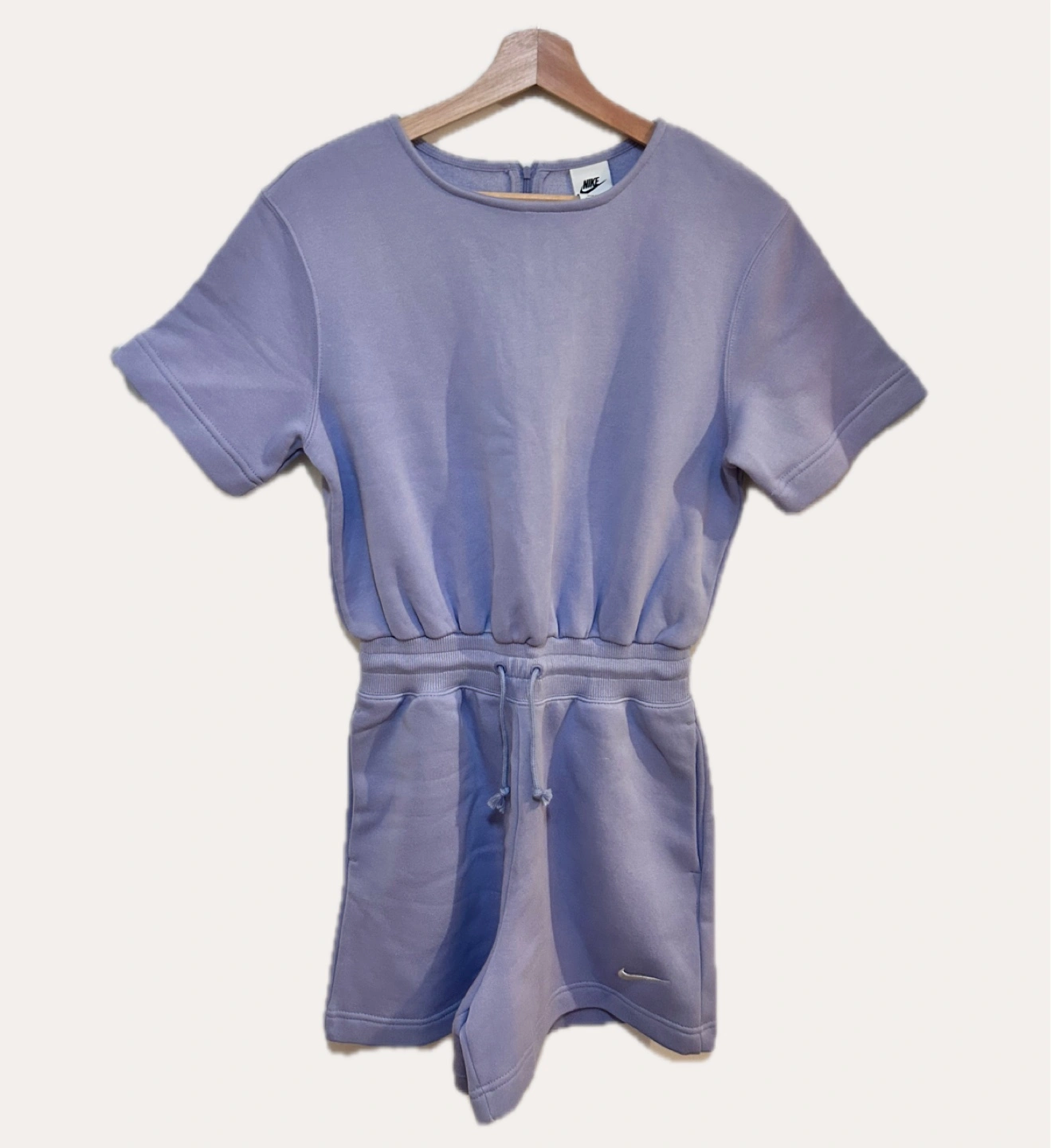 Selling a women’s XS Nike romper in a lovely lavender colour. It features a drawstring waist, a zip up back, and pockets! It's in great condition, and its soft and cozy material makes it perfect for lounging around or running errands. washed, never worn. cash preferred meet- Shoppers Drug Mart (Bayview & Elgin Mills)
