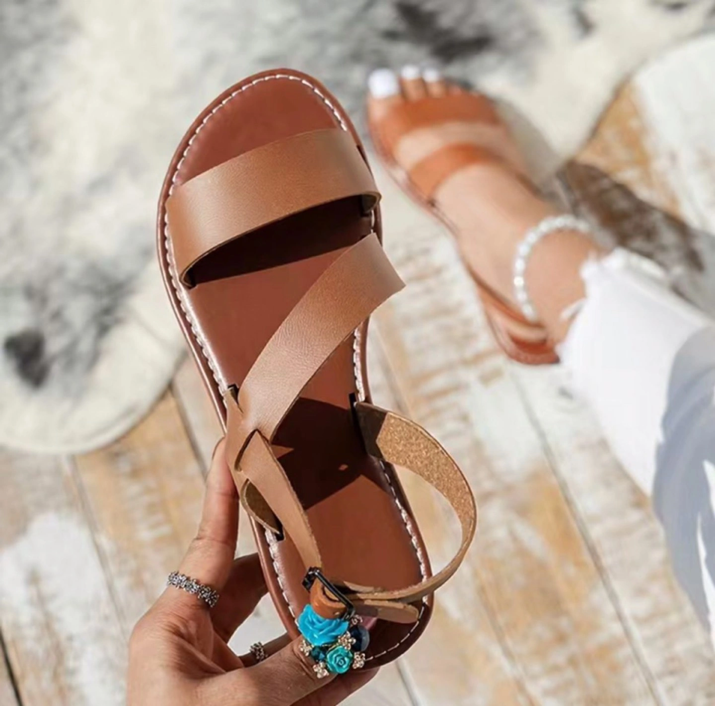 New never used Women's Stylish Flat Ankle Strap Sandals - Non-slip Open Toe Casual Beach Shoes