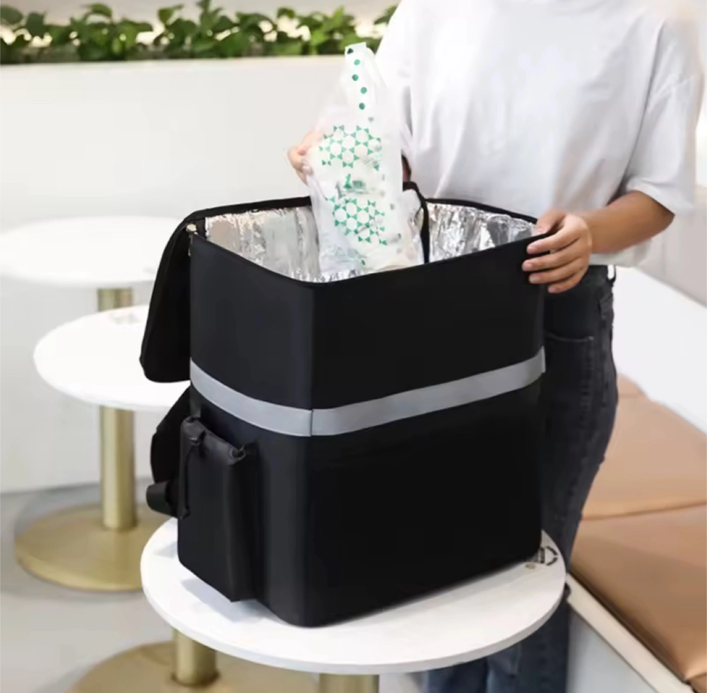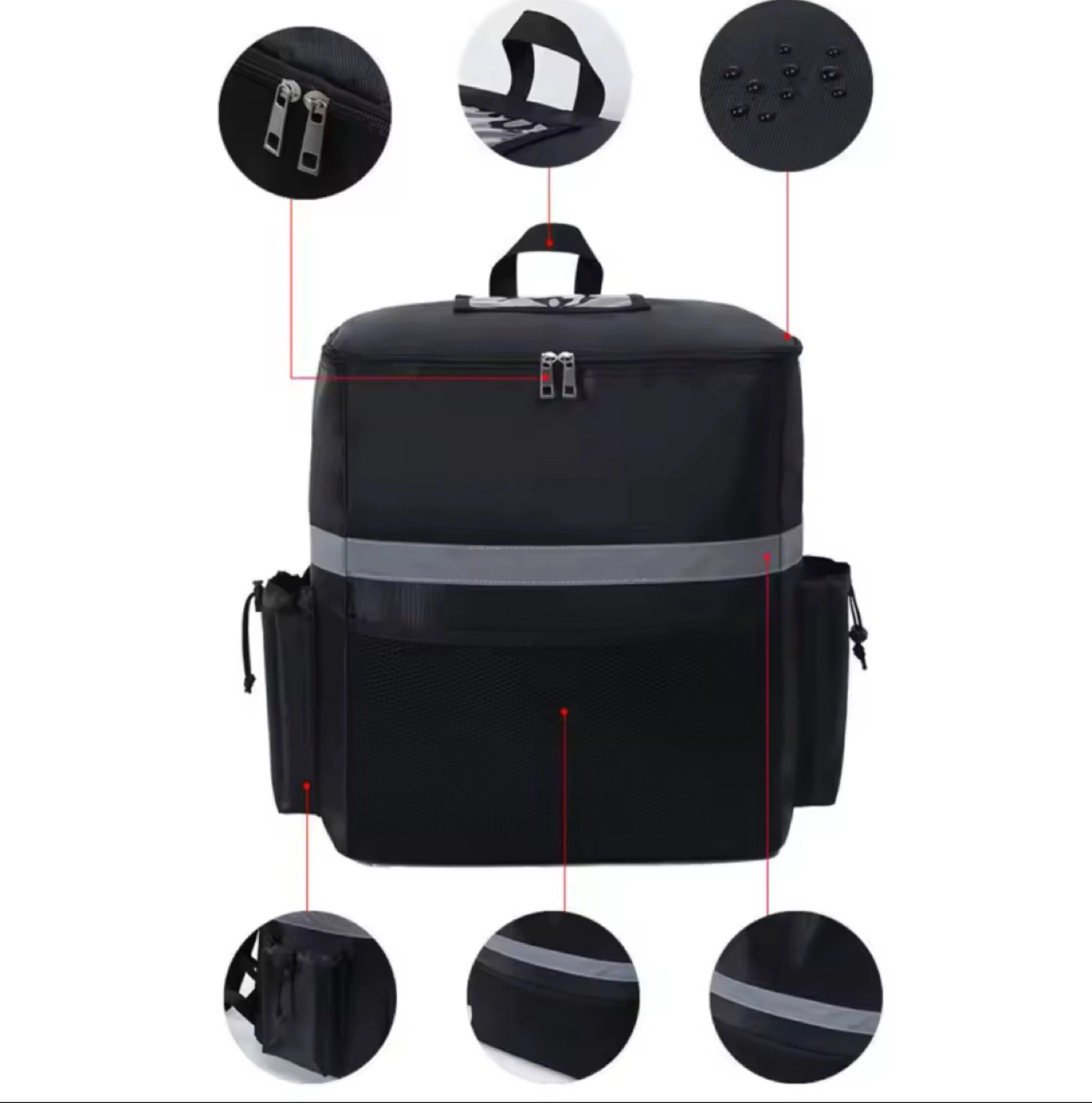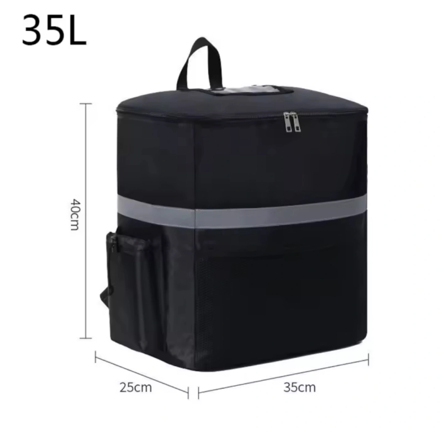 Keep your food deliveries hot (or cold!) with this 35L insulated backpack. It's perfect for delivery drivers or anyone who needs to transport food while keeping it at the right temperature. The backpack is black and features reflective strips for added visibility. It measures approximately 40cm tall, 35cm wide, and 25cm deep.
