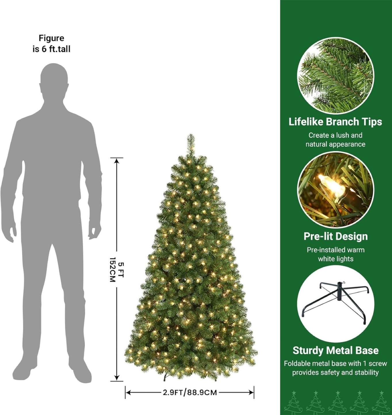 5ft Prelit Artificial Christmas Tree – Warm White Lights