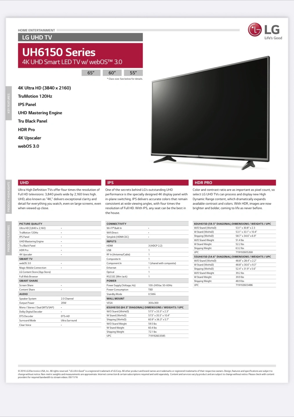 LG 65UH6150 65" 4K Smart LED TV w/ webOS™ 3.0