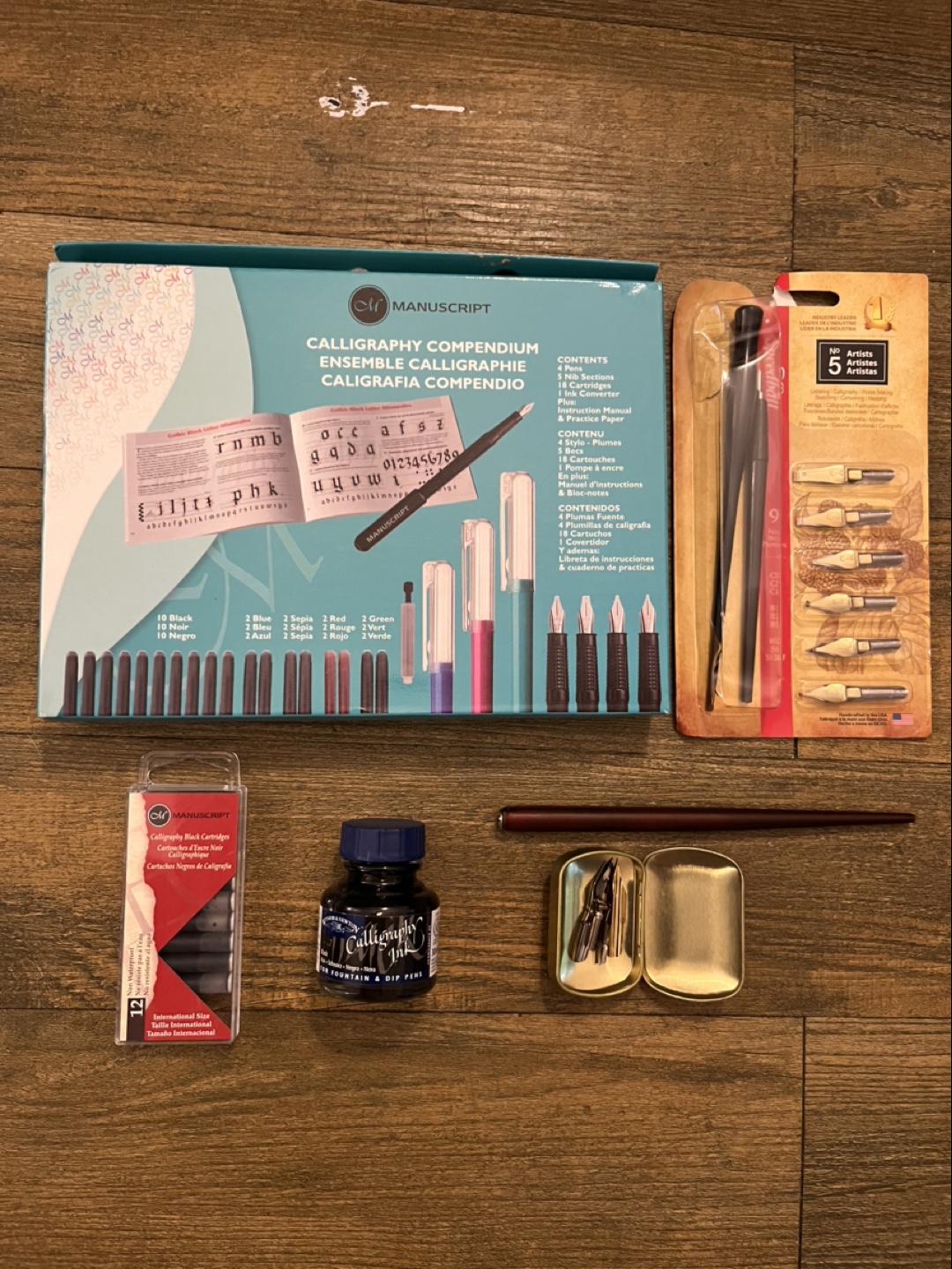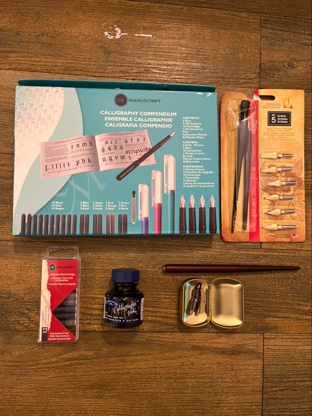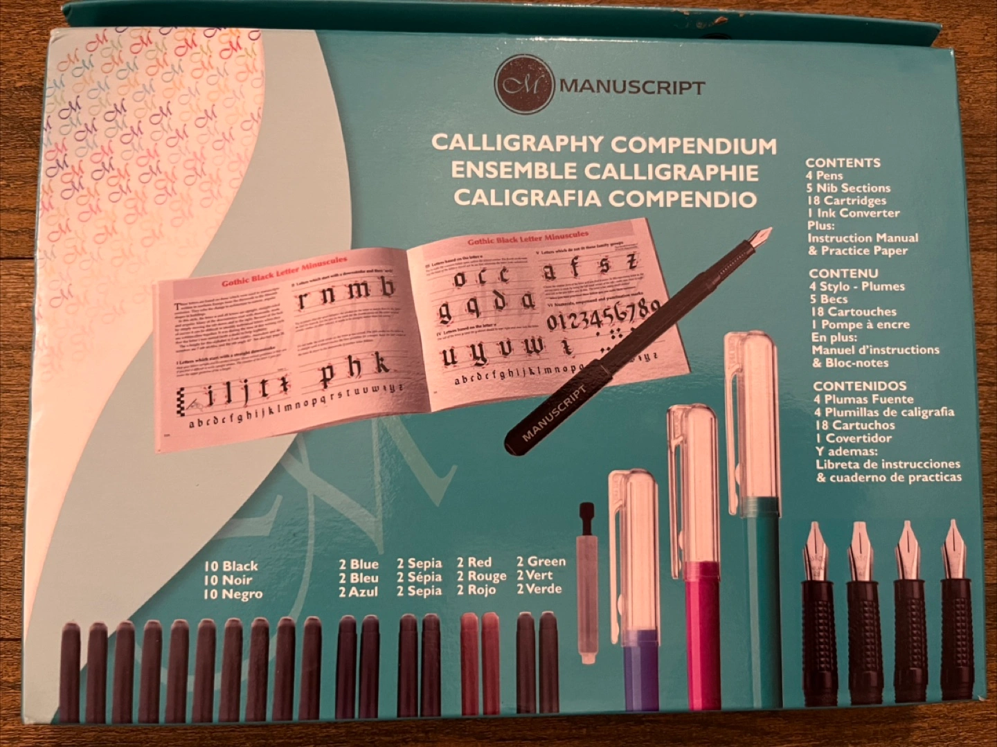 I'm selling a calligraphy set that includes a Manuscript Calligraphy Compendium and a Speedball nib set! The compendium includes: