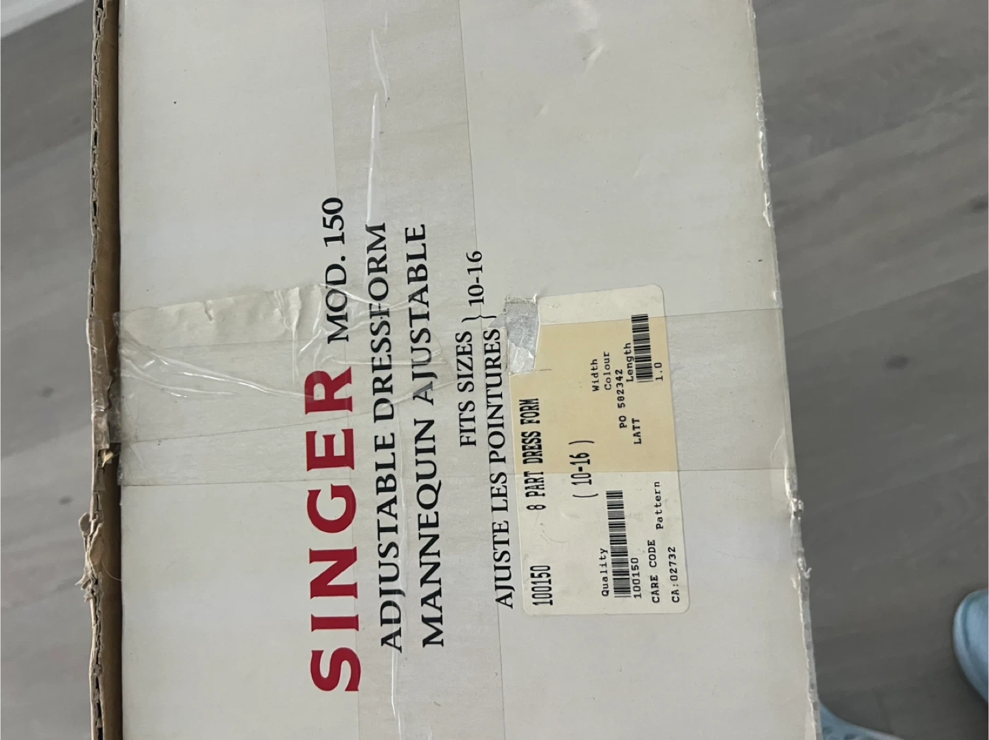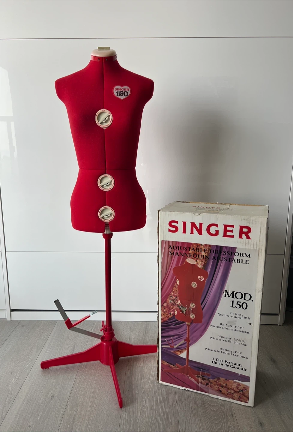 Selling a Singer Adjustable Dress Form Mannequin, model 150. It's adjustable to fit sizes 10-16. Perfect for pattern adjustments before cutting and setting necklines, sleeves, and collars easily! The box is included.