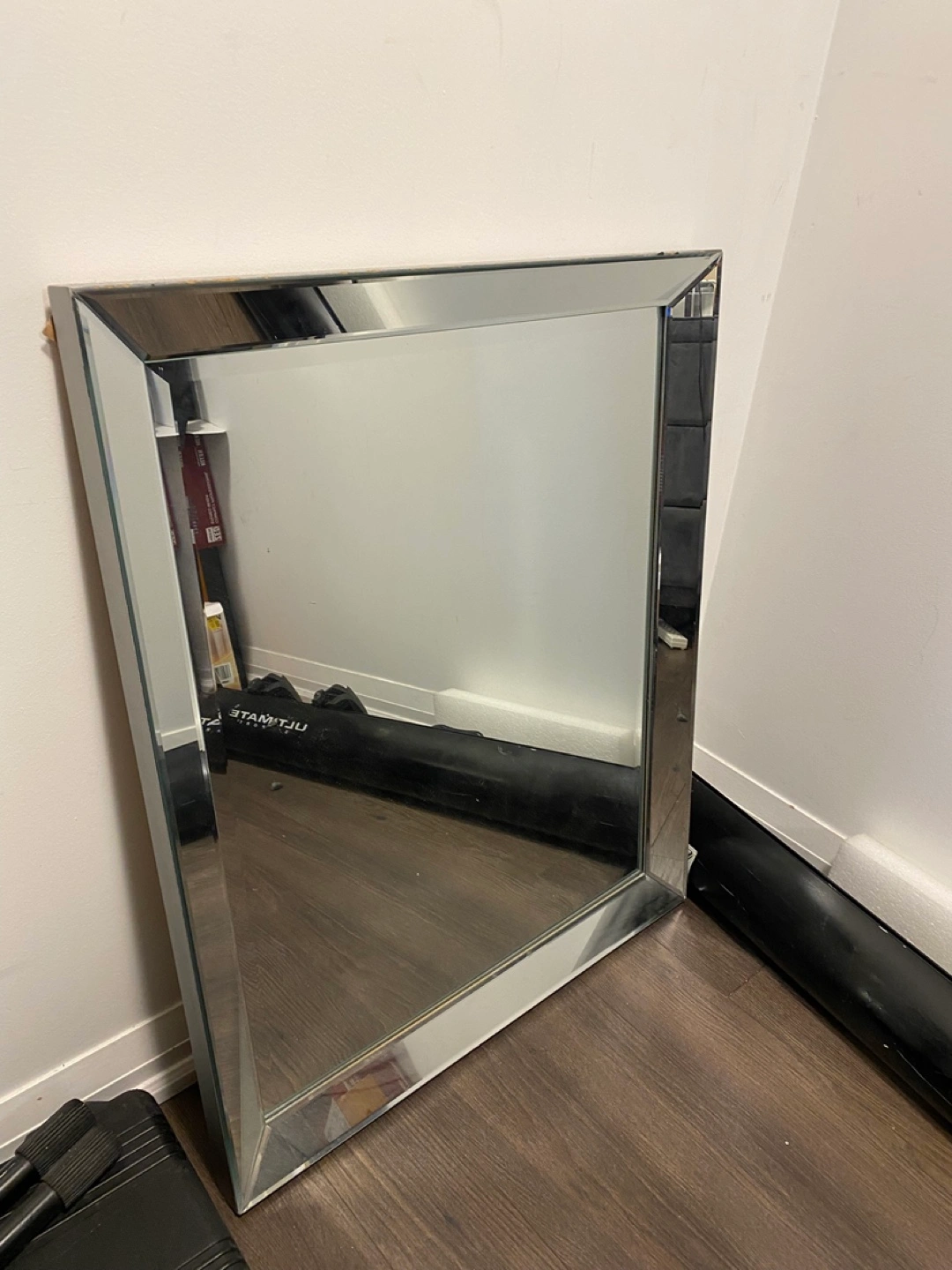 Selling a square mirror with a beveled edge. It's in great shape and would look lovely in any room of the house
