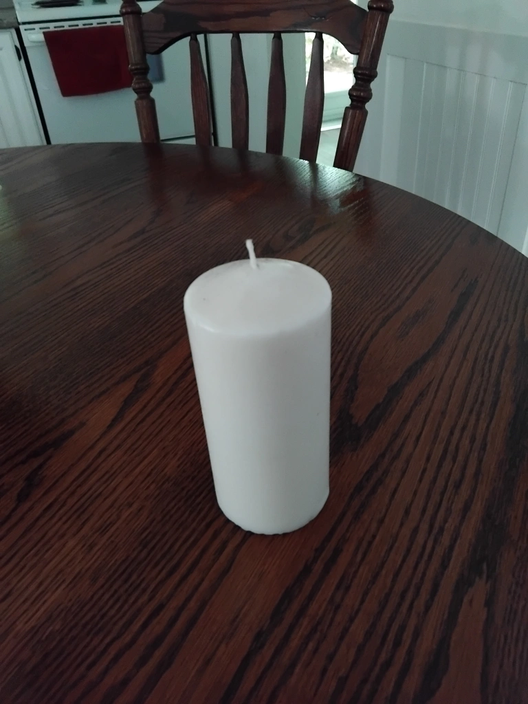 Here's a simple white pillar candle, perfect for adding a bit of light to any room! It's in great shape and ready to find a new home. It's a classic and versatile piece that can match any decor