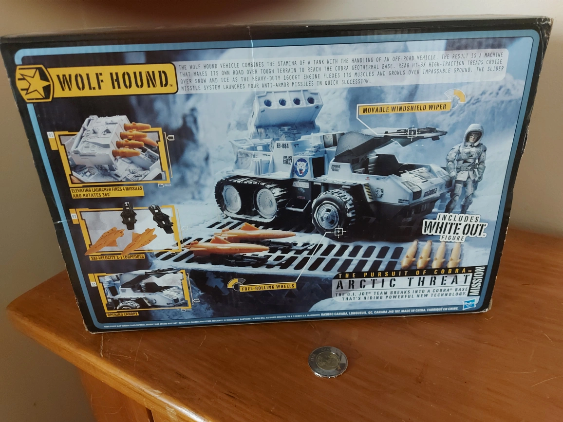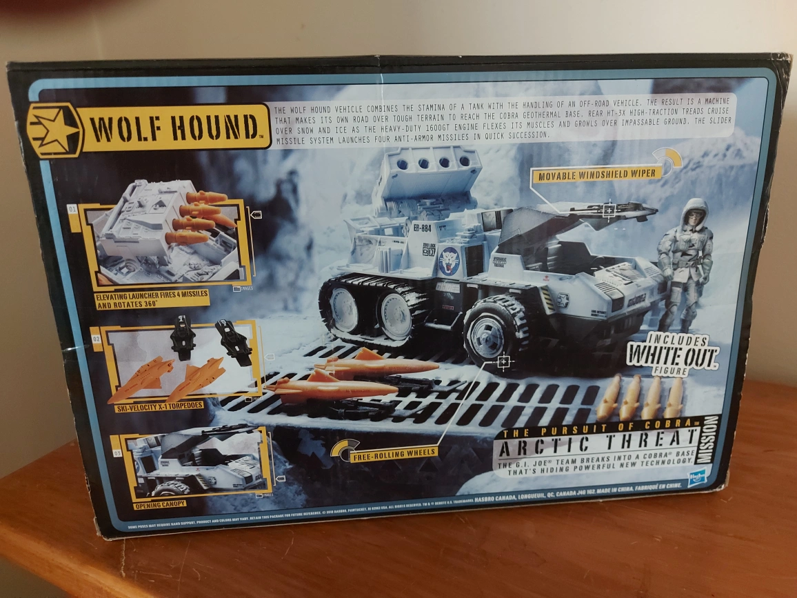 Selling a "never opened" G.I. Joe Wolf Hound vehicle with the White Out figure included! This set is from the Arctic Threat series. The box shows some wear, but the toy itself is in great shape. Perfect for any G.I. Joe collector or kiddo who loves adventure!
