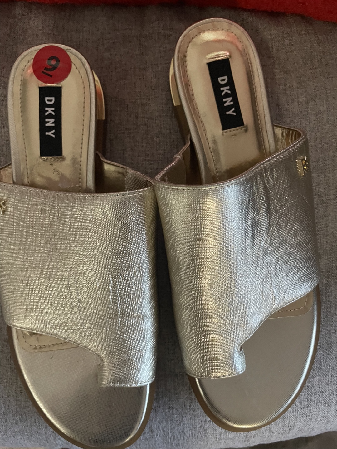 Selling a pair of DKNY gold thong sandals in size 9. They are in good condition and ready for a new home! Perfect for adding a touch of glam to your summer outfits