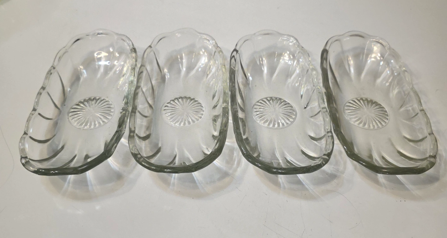 259Vintage Anchor Hocking Banana Split Dishes Set of 4 Can be used for Ice cream, corn on the cob, pickles..etc In Mint Condition No chips or cracks Pick up at Yonge and Steeles