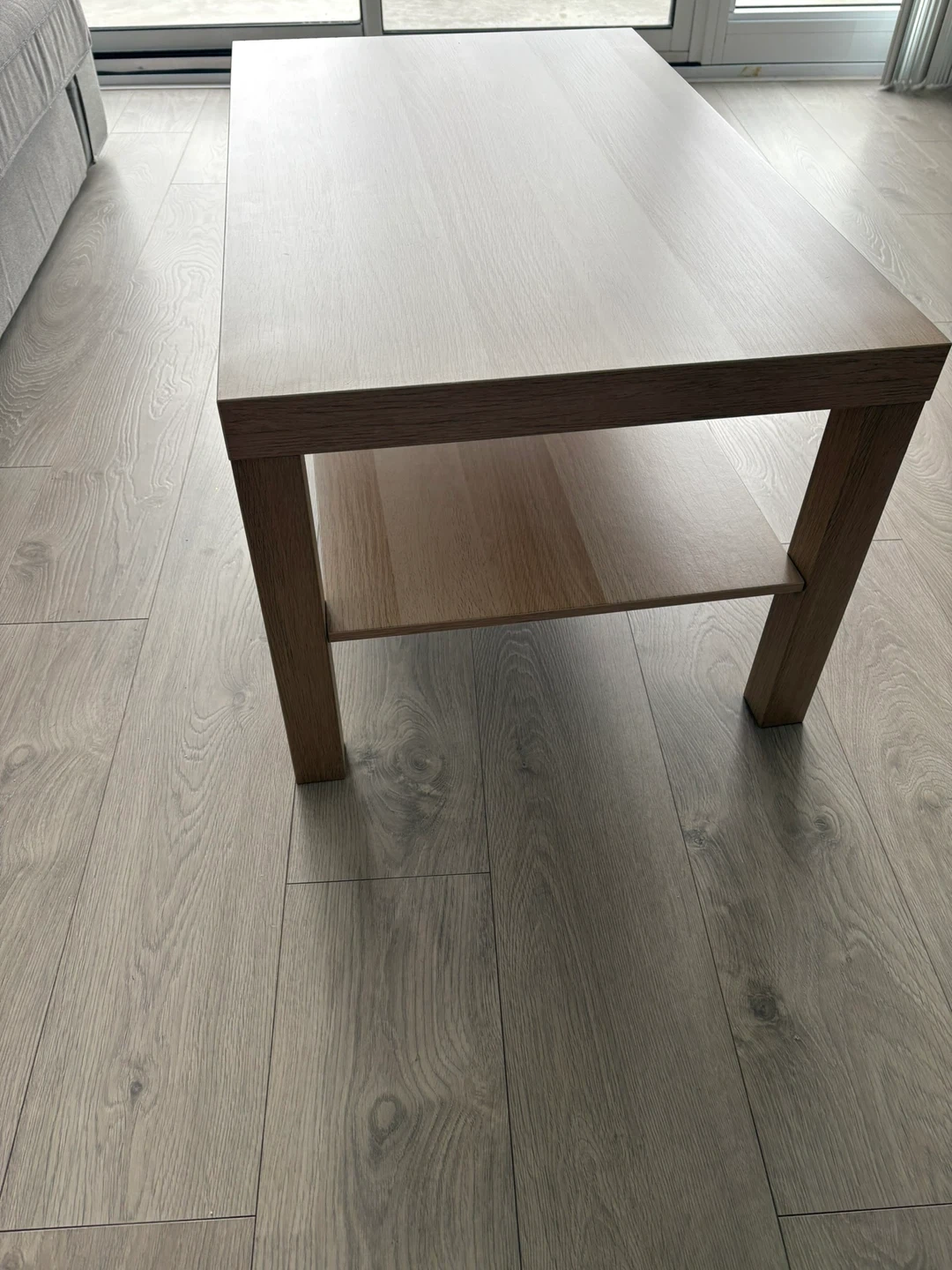 A simple coffee table with a shelf underneath for storage or decoration. It's in good condition and ready for a new home. Perfect for any living room!