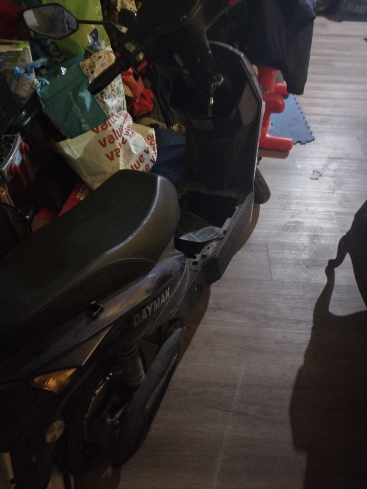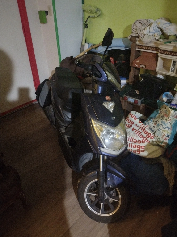 This Electric Moped runs when plugged into the wall, but needs one more battery for the main pack, and maybe needs 2 more for the secondary pack.