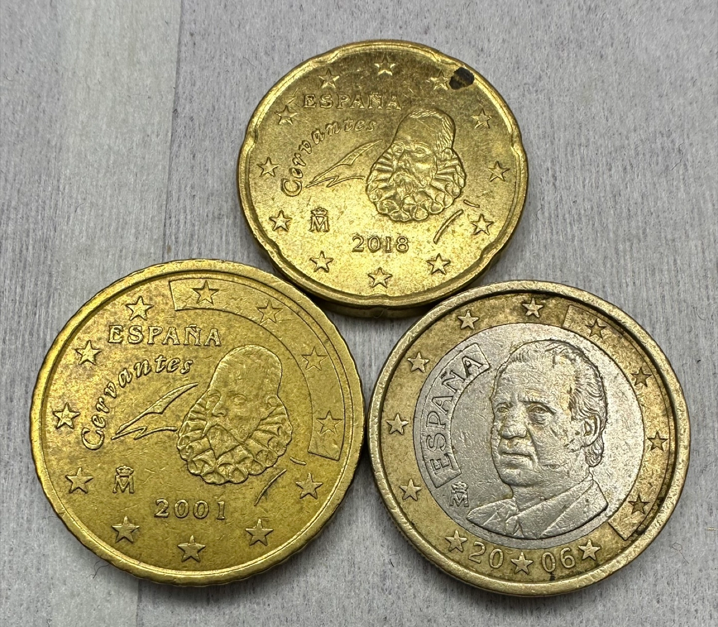 Selling a collectible Spanish ,1 Euro Coin,2006, 50 cents 2001 and 20 cents 2018 coins.