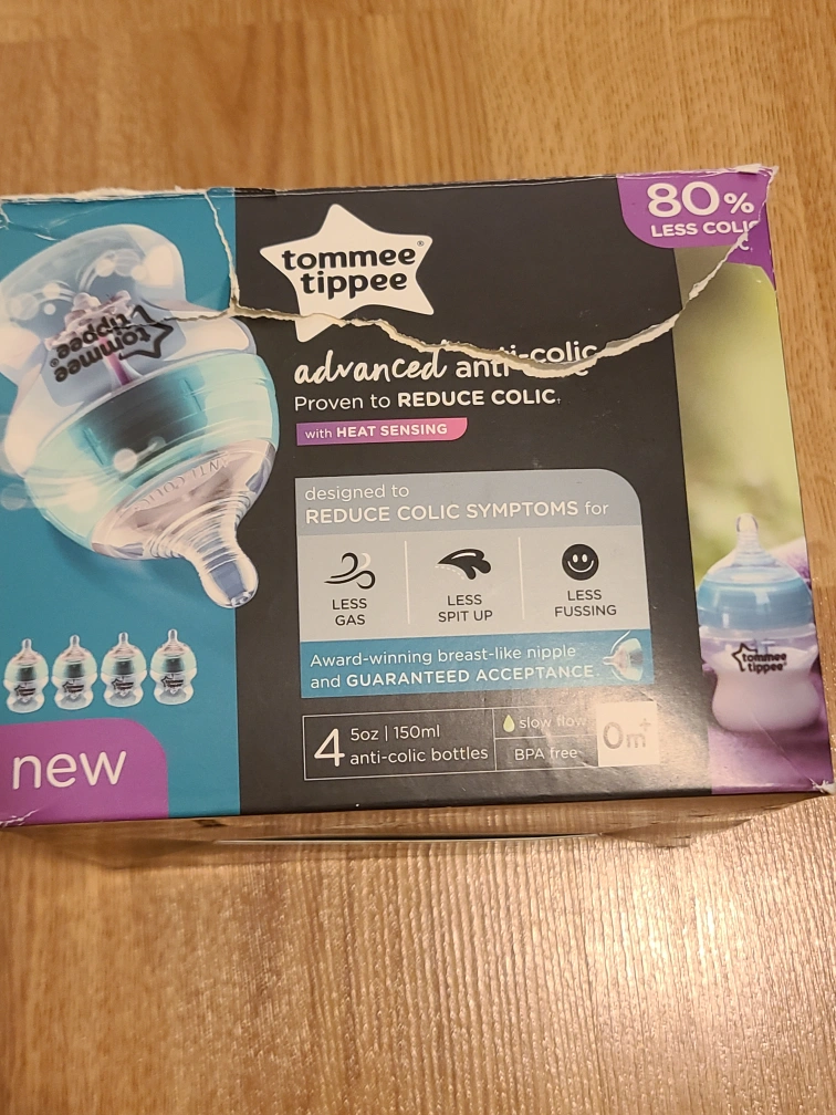 Selling a set of Tommee Tippee Advanced Anti-Colic bottles. This pack includes four 5oz/150ml anti-colic bottles designed to reduce colic symptoms with heat sensing technology. The bottles feature an award-winning breast-like nipple for a natural latch and a unique 3-piece anti-colic technology to draw air away from milk. The box is included!