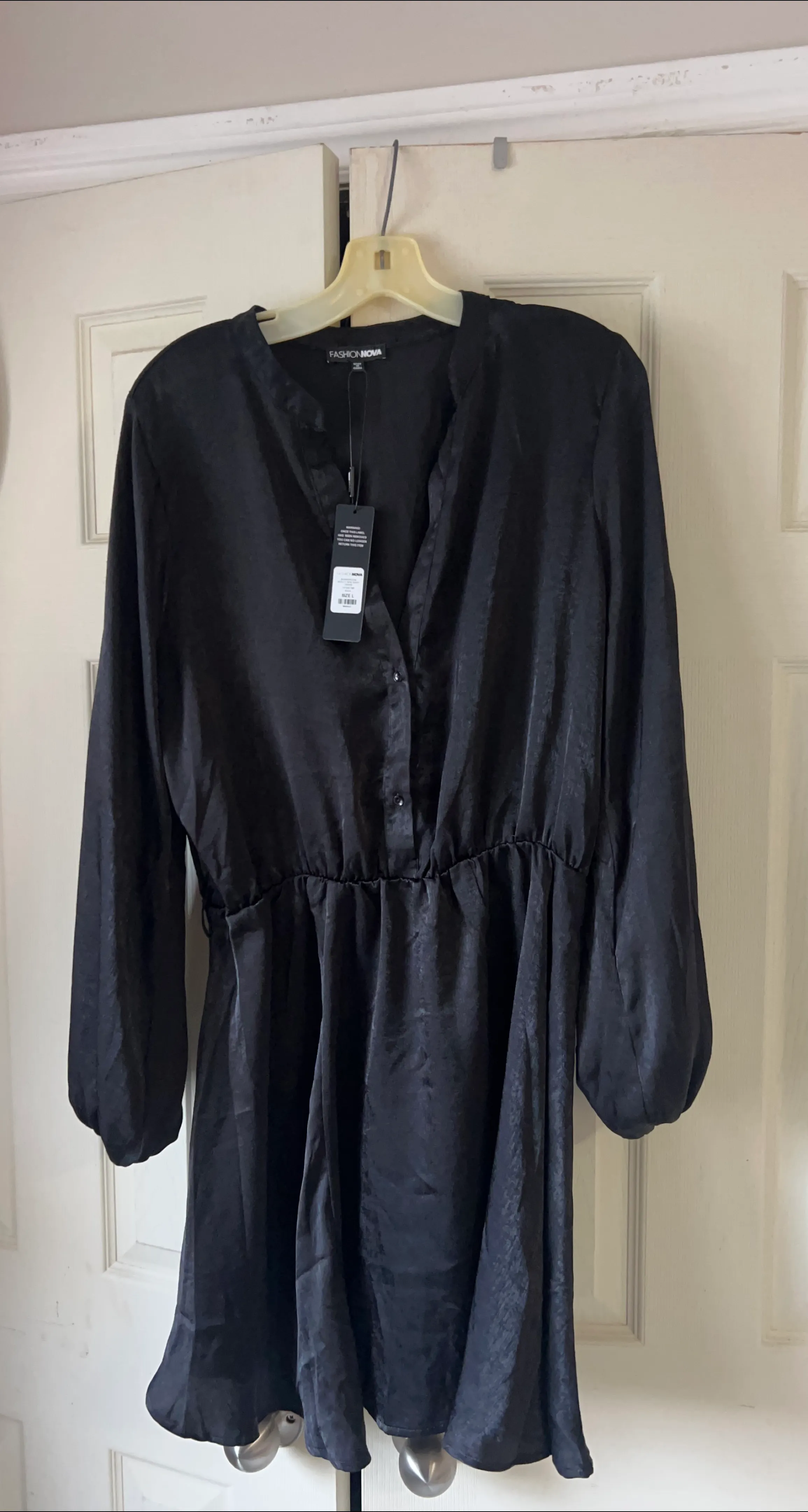 Selling a Fashion Nova black dress in size L. It's in great condition and ready for a new home! The dress features long sleeves and a flattering silhouette. Perfect for any occasion!