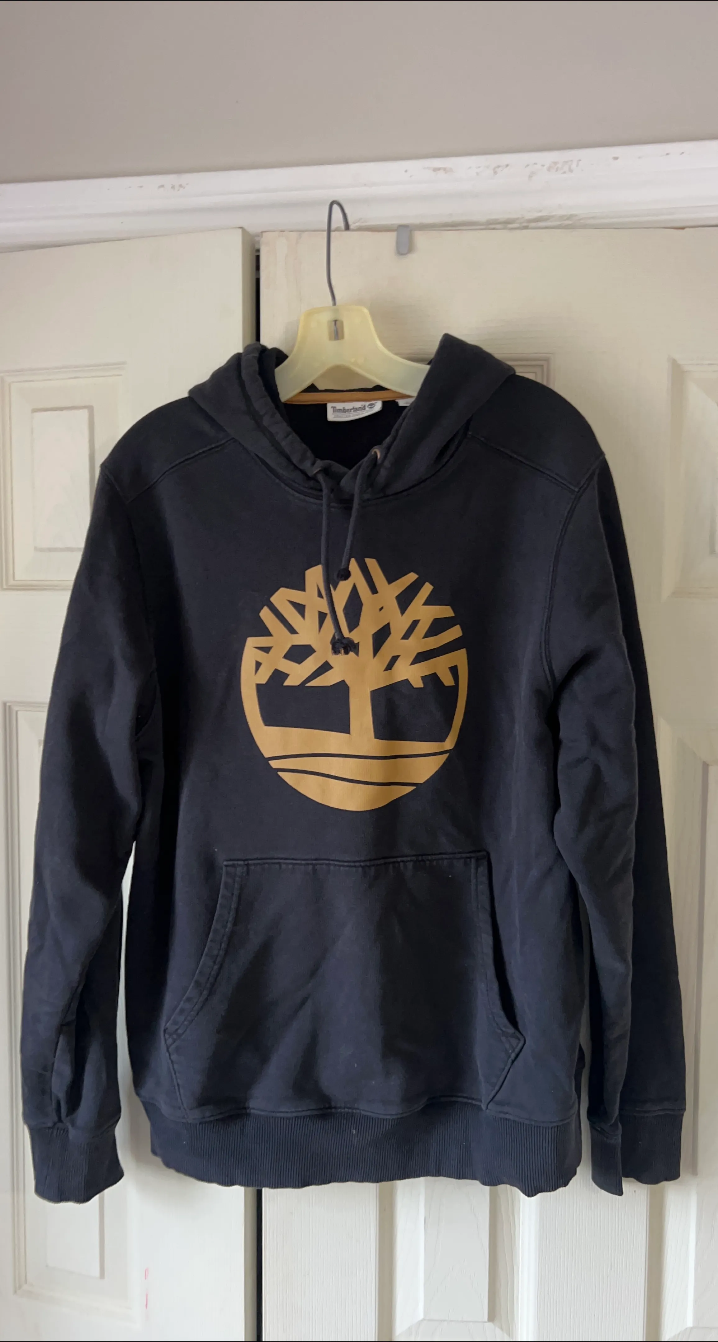 Selling a Timberland hoodie. It's black with the Timberland logo on the front. It's in good condition and ready for a new home