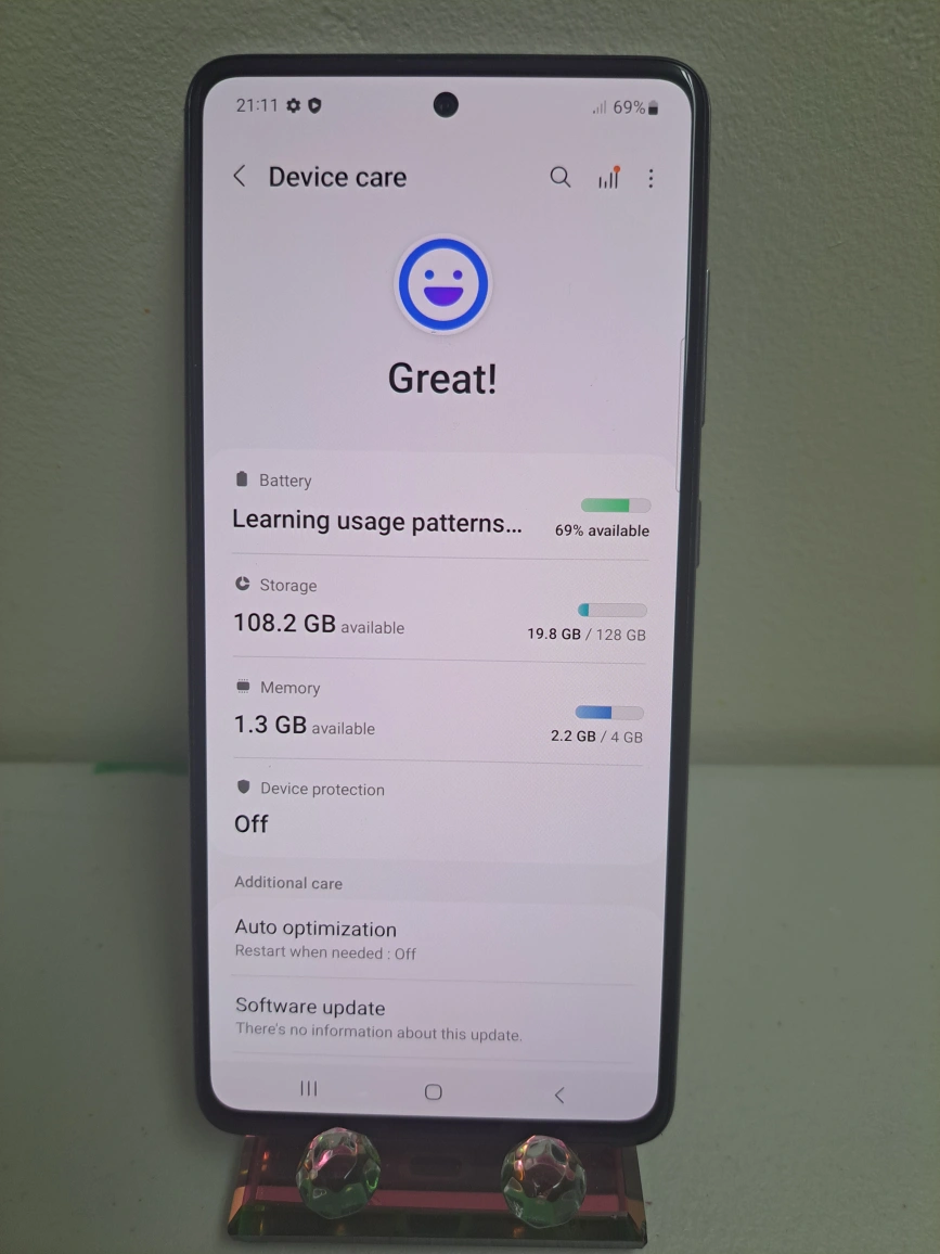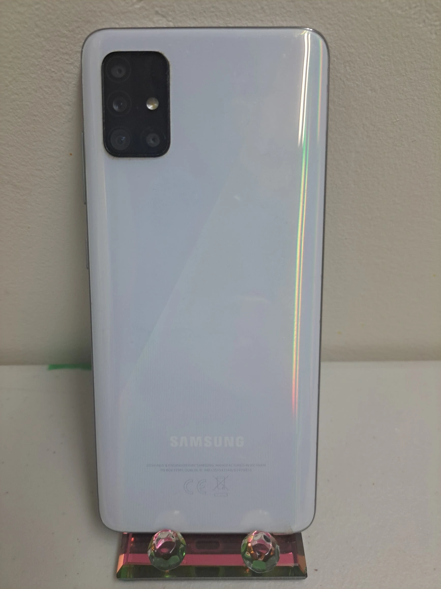 Selling a Samsung Galaxy A51. It has 128GB of storage and the battery is in great condition, showing 69% available. It's a great phone!