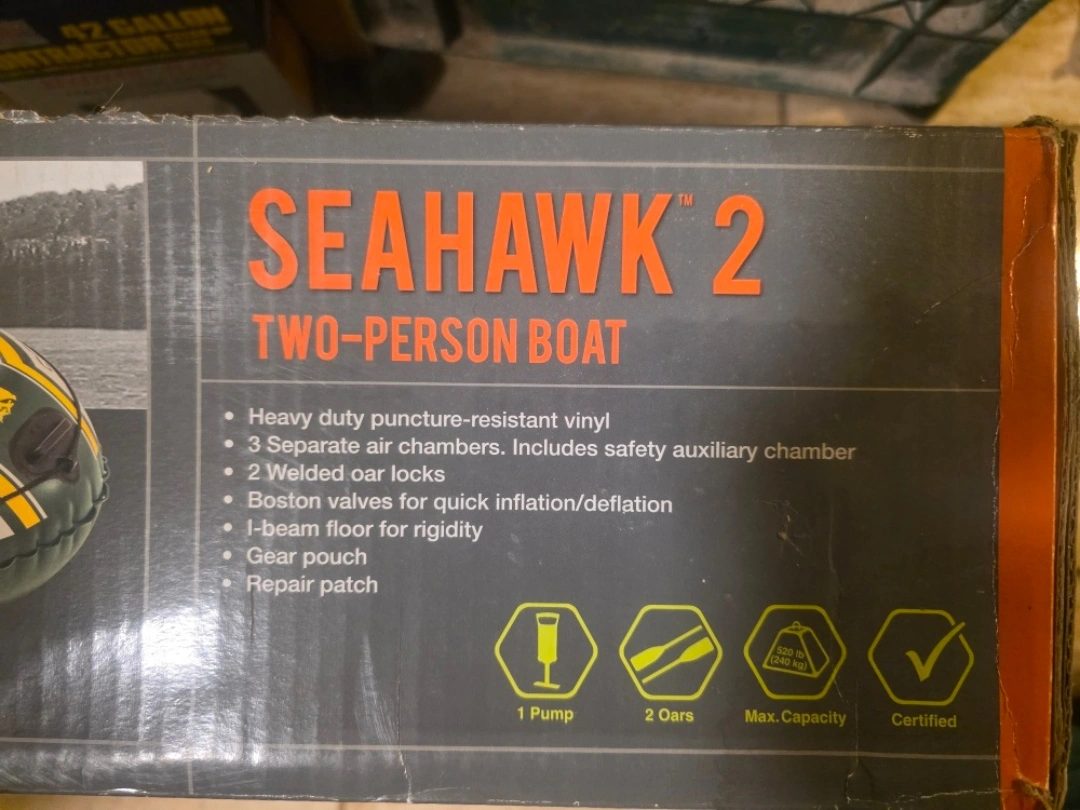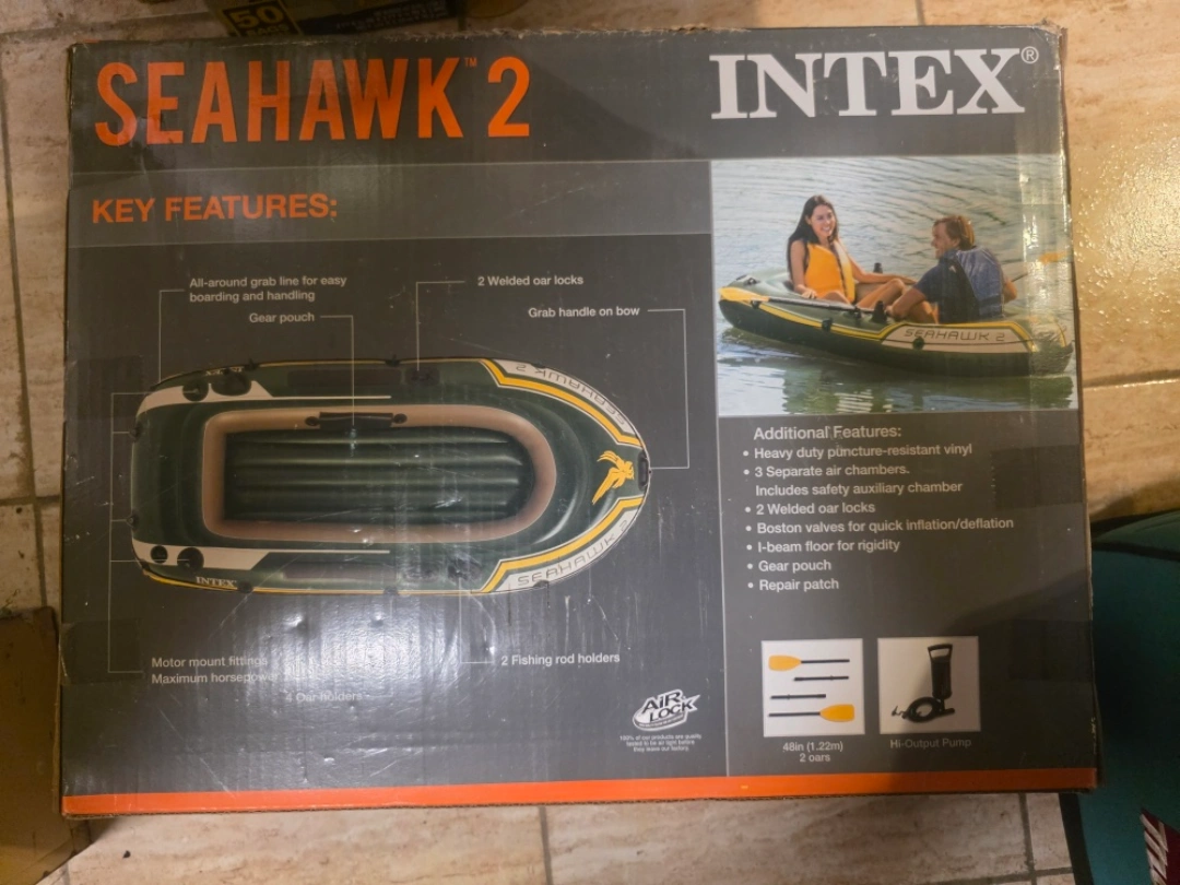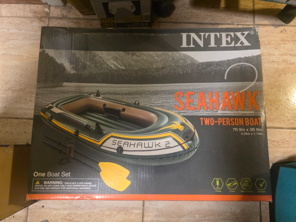 Selling a brand new Intex Seahawk 2 two-person inflatable boat, still in the box!