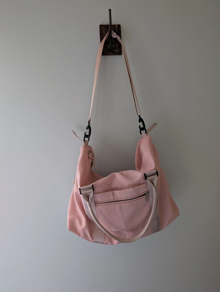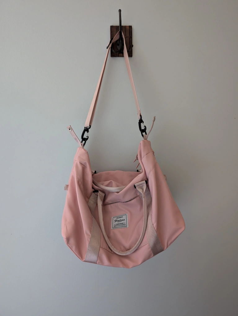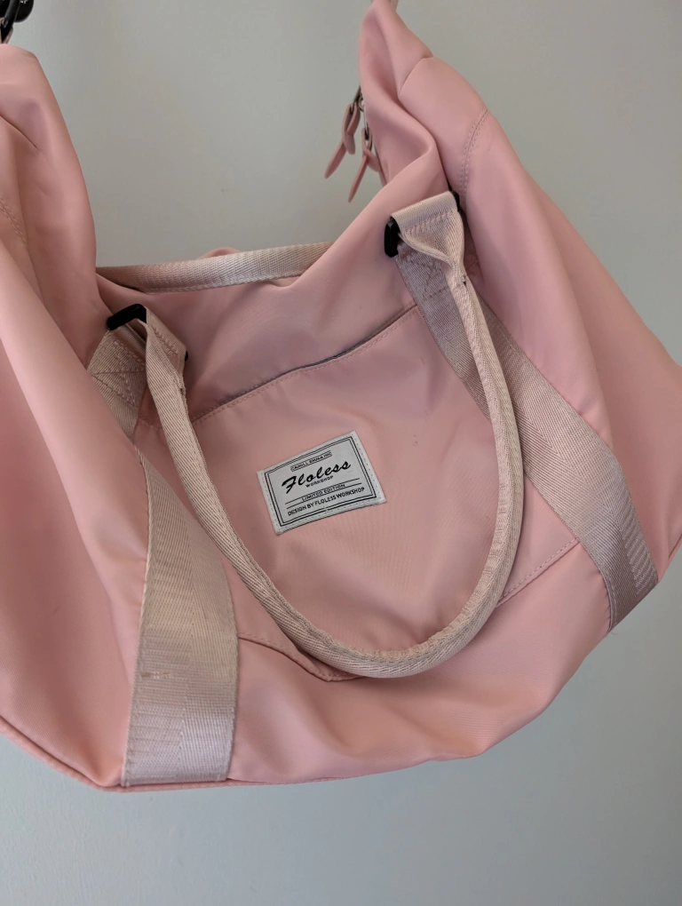 Here's a cute Floless brand shoulder bag in a lovely pink colour! It's perfect for everyday use or as a travel bag. It features multiple compartments to keep your belongings organized and easy to access. Back to school. Spacious, provides lots of room for books and storage. Like new!