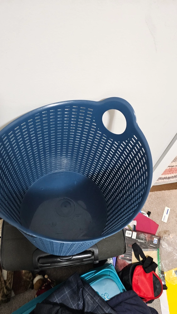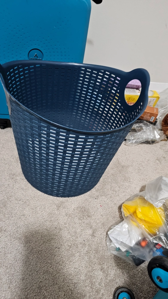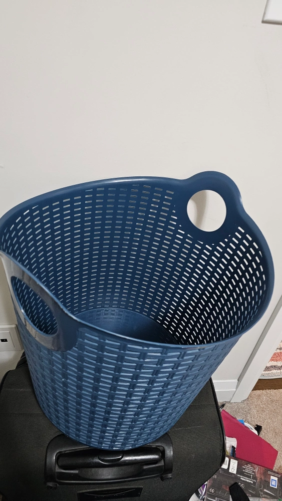 Selling a blue wicker-style laundry basket. It's in great shape and ready to help with your laundry needs!