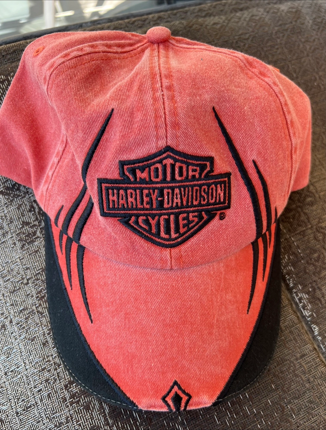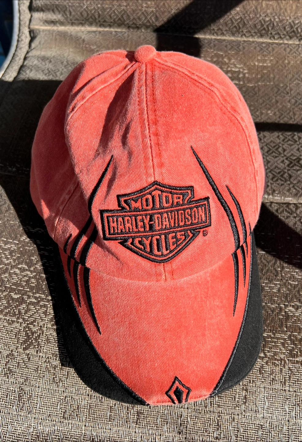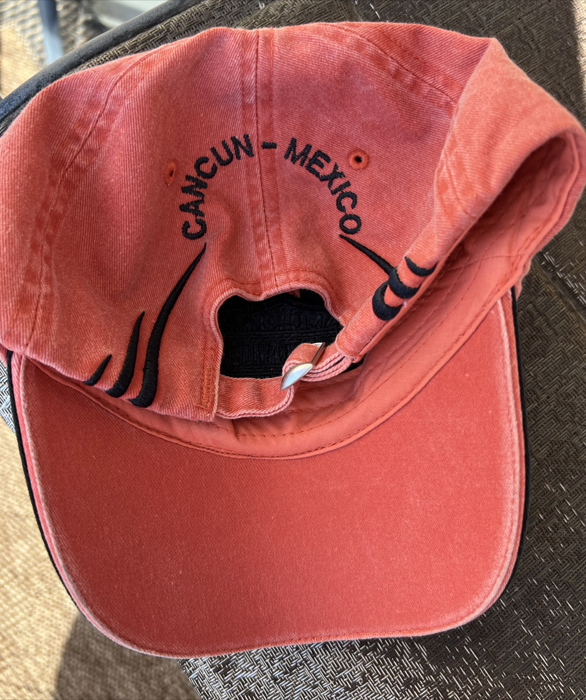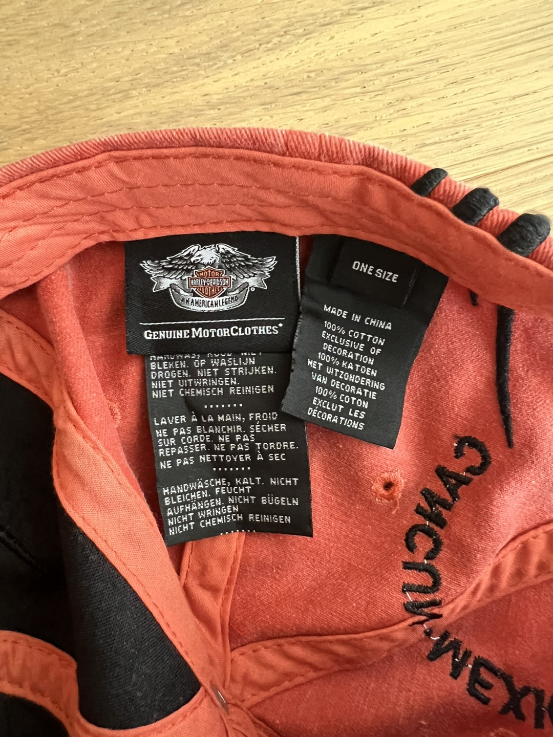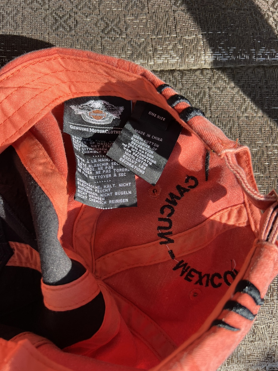 Harley-Davidson cap in Harley orange with black accents. The cap has 'Cancun - Mexico' embroidered on the back. It's a one-size-fits-all adjustable at back and made of 100% cotton. Excellent condition, never been worn. Asking $25