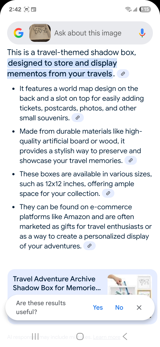 Selling a brand new travel-themed shadow box, still in its original packaging! It's designed to store and display your travel mementos.