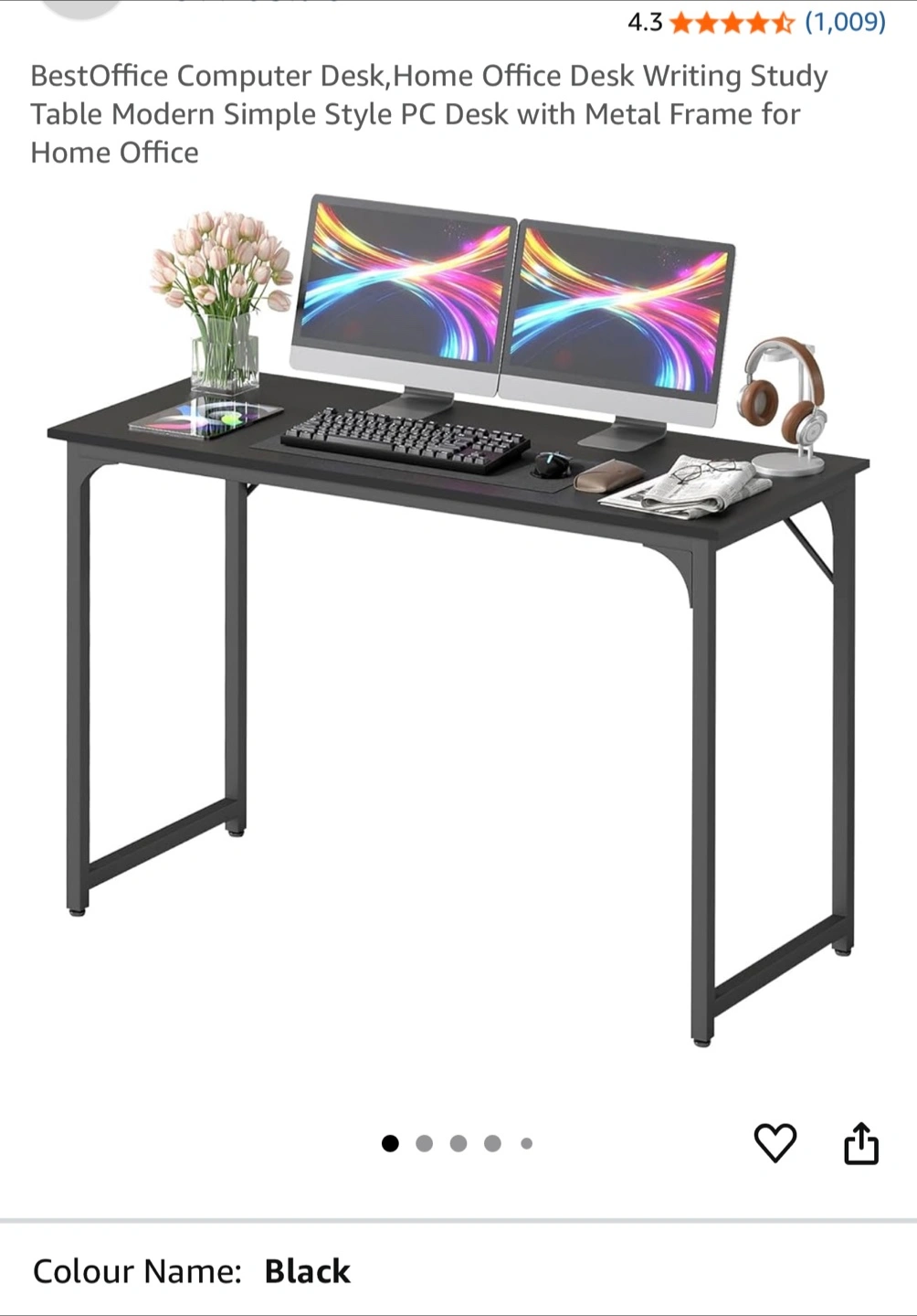 Looking to sell this BestOffice computer desk! It's perfect for a home office or study space. The desk features a simple, modern style with a metal frame. It's black in colour and in great condition!