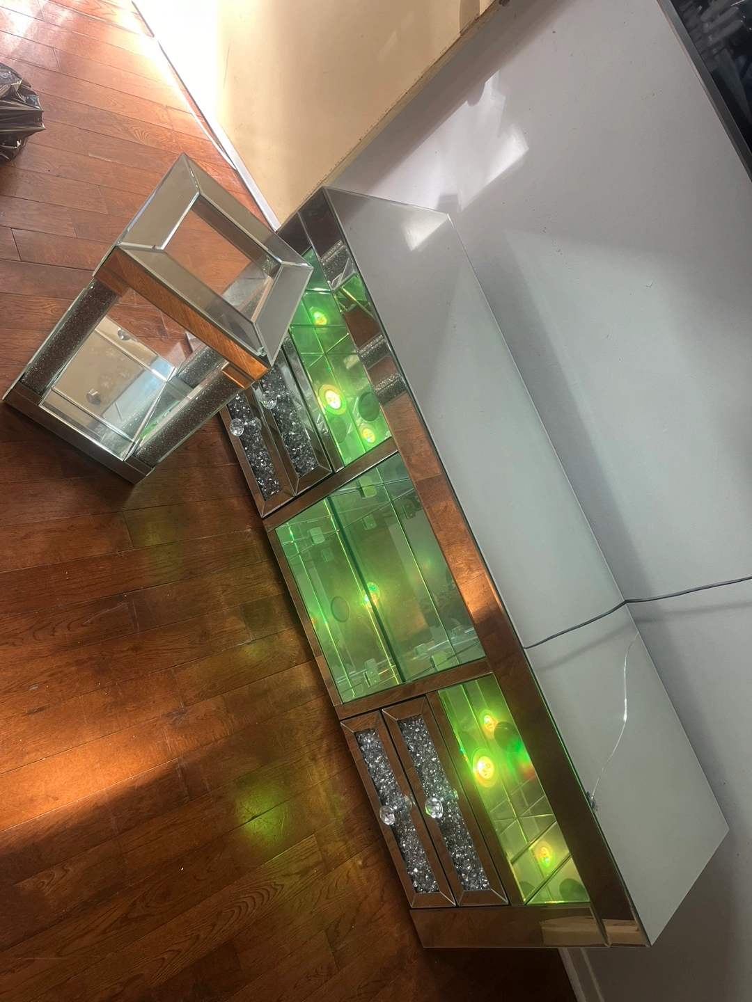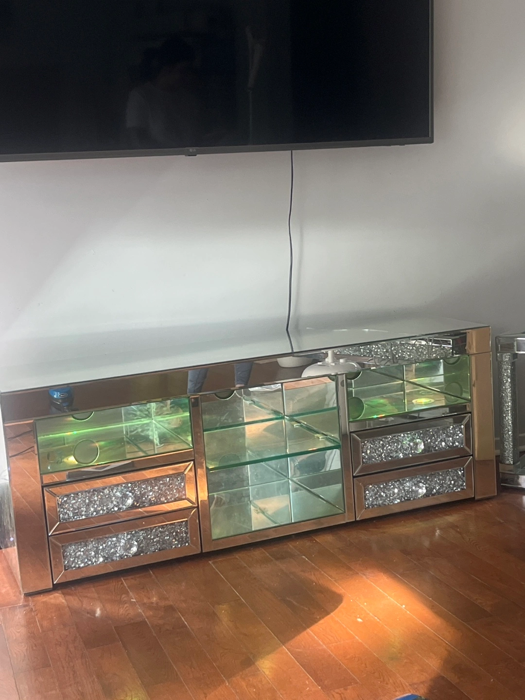Selling a lovely mirrored TV stand! It features crystal accents on the drawers, which really catch the light. It's a great piece to add a touch of glamour to your living room or entertainment area