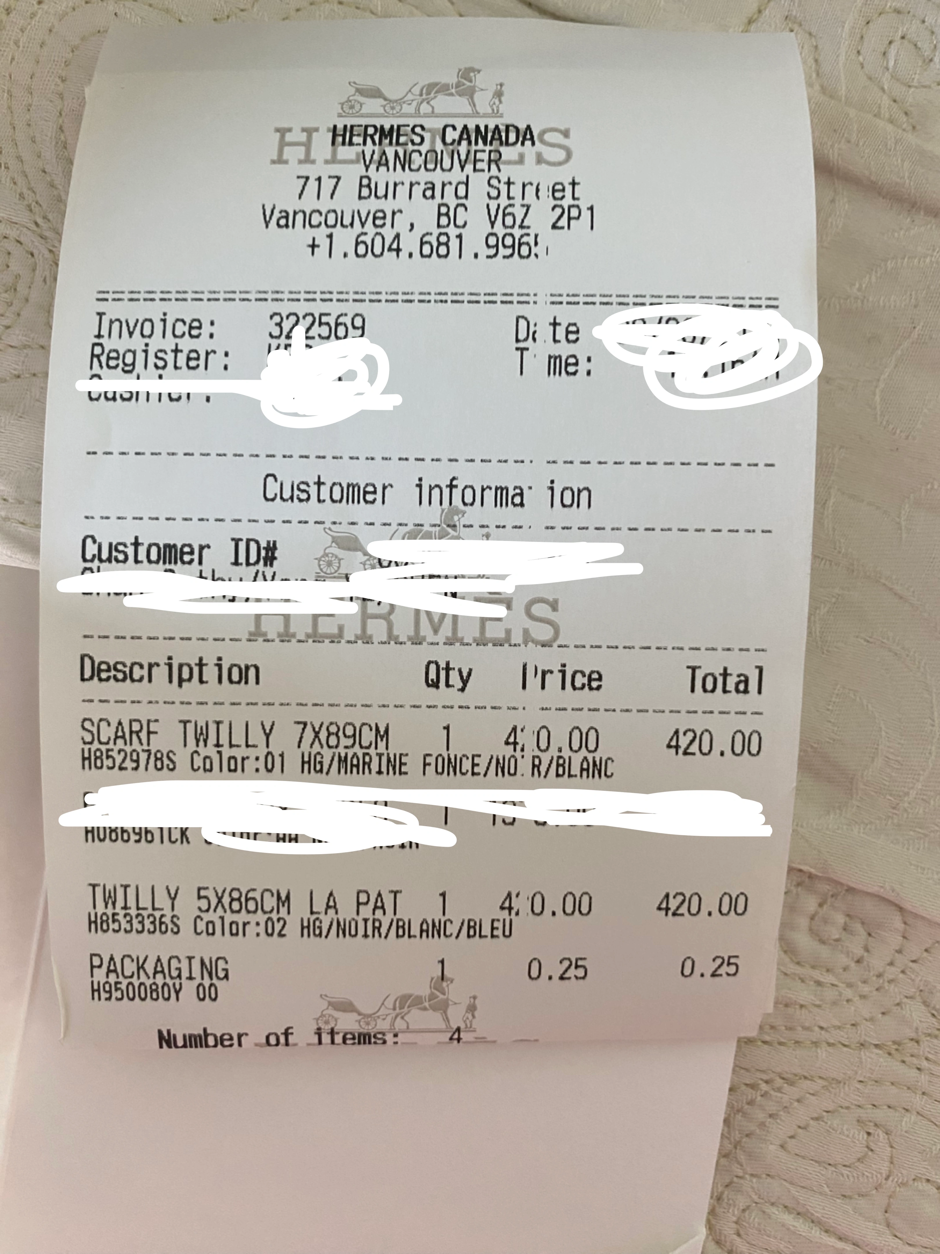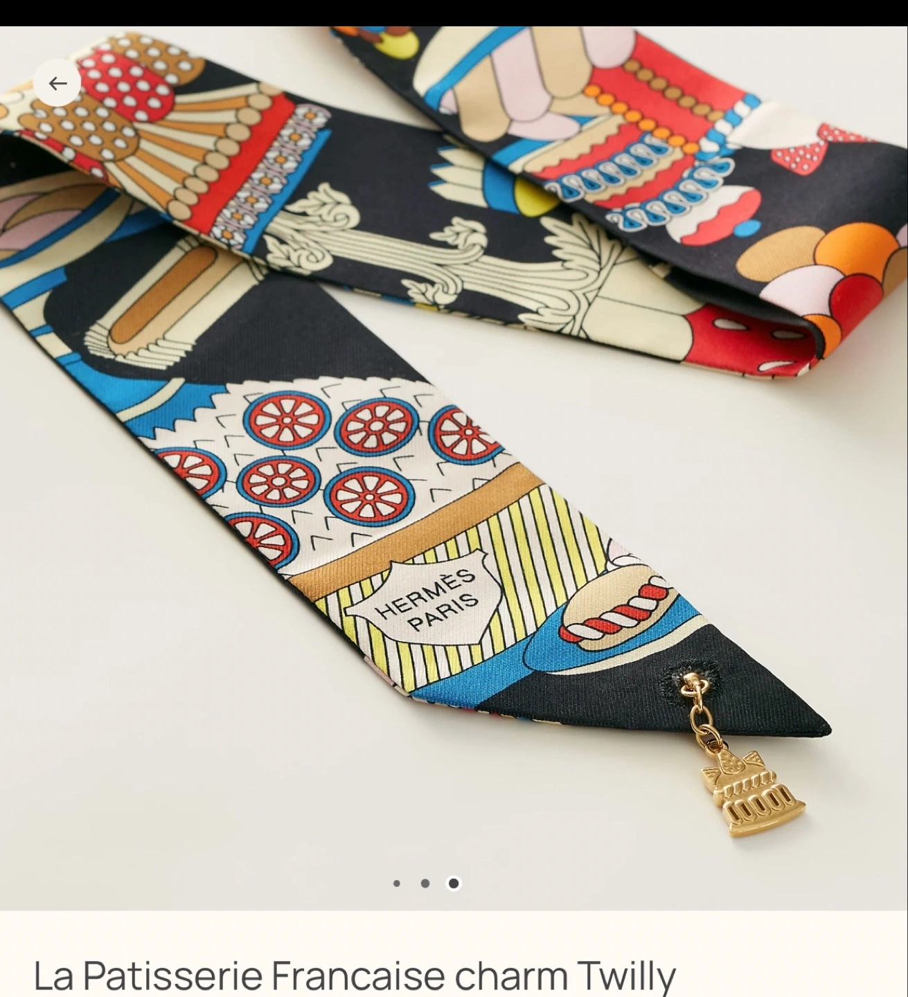 Selling a beautiful Hermès La Patisserie Française charm Twilly! It's new and comes with the original box and receipt. The twilly is 5x86cm and features a delightful design.