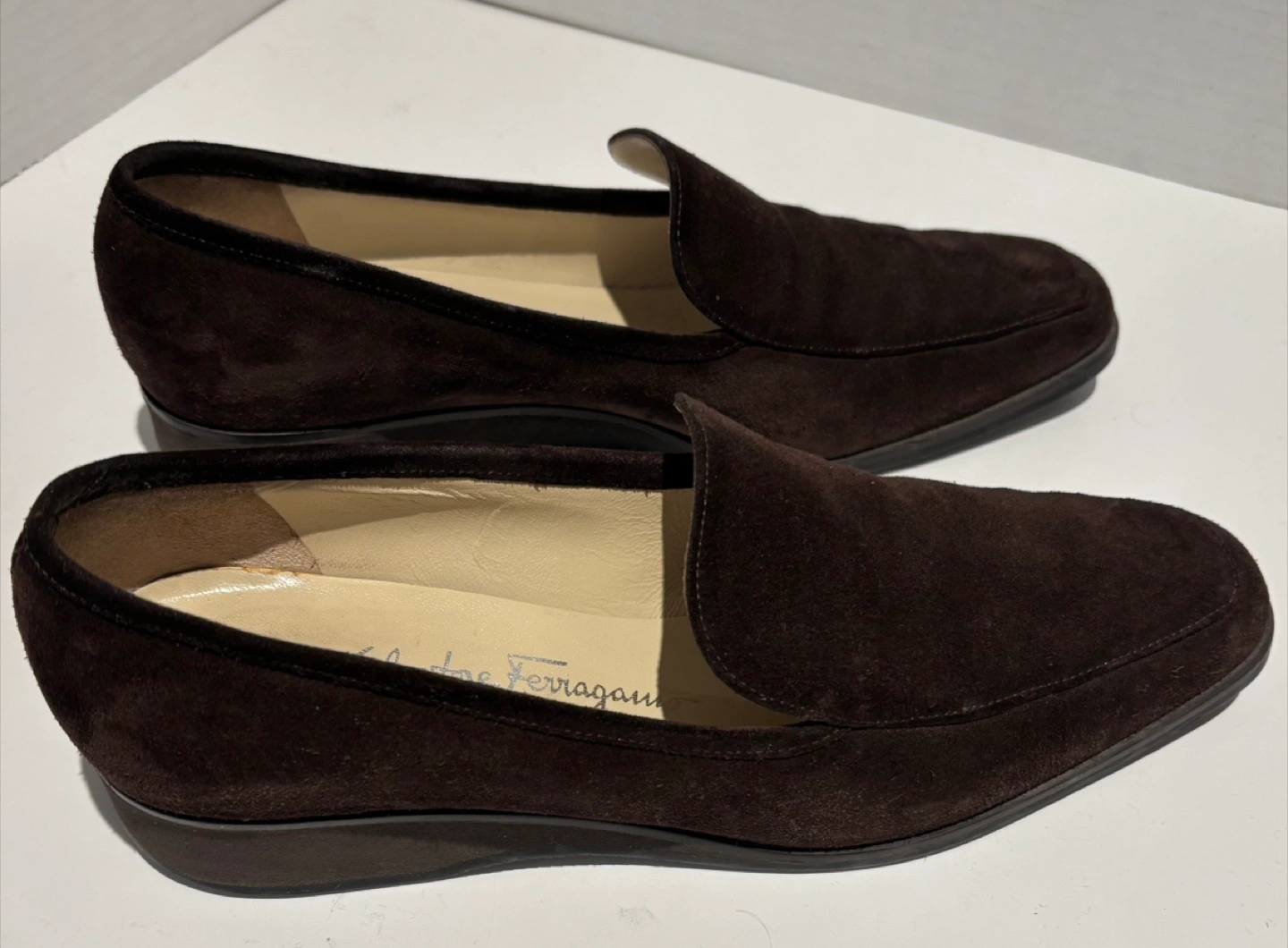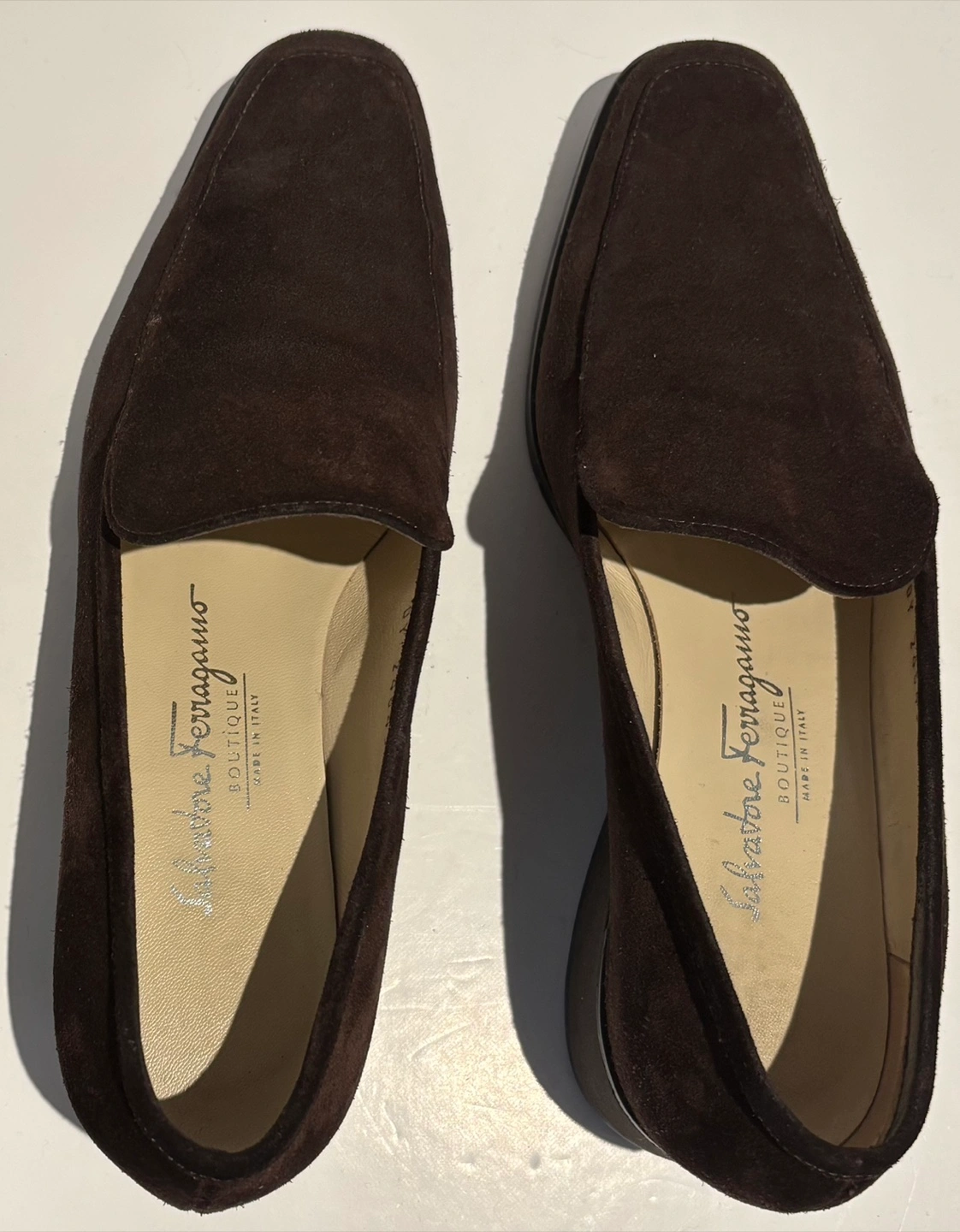Selling a pair of Salvatore Ferragamo loafers in a lovely brown suede. These are a size 5.5 and are in good condition. They would be a great addition to your wardrobe!