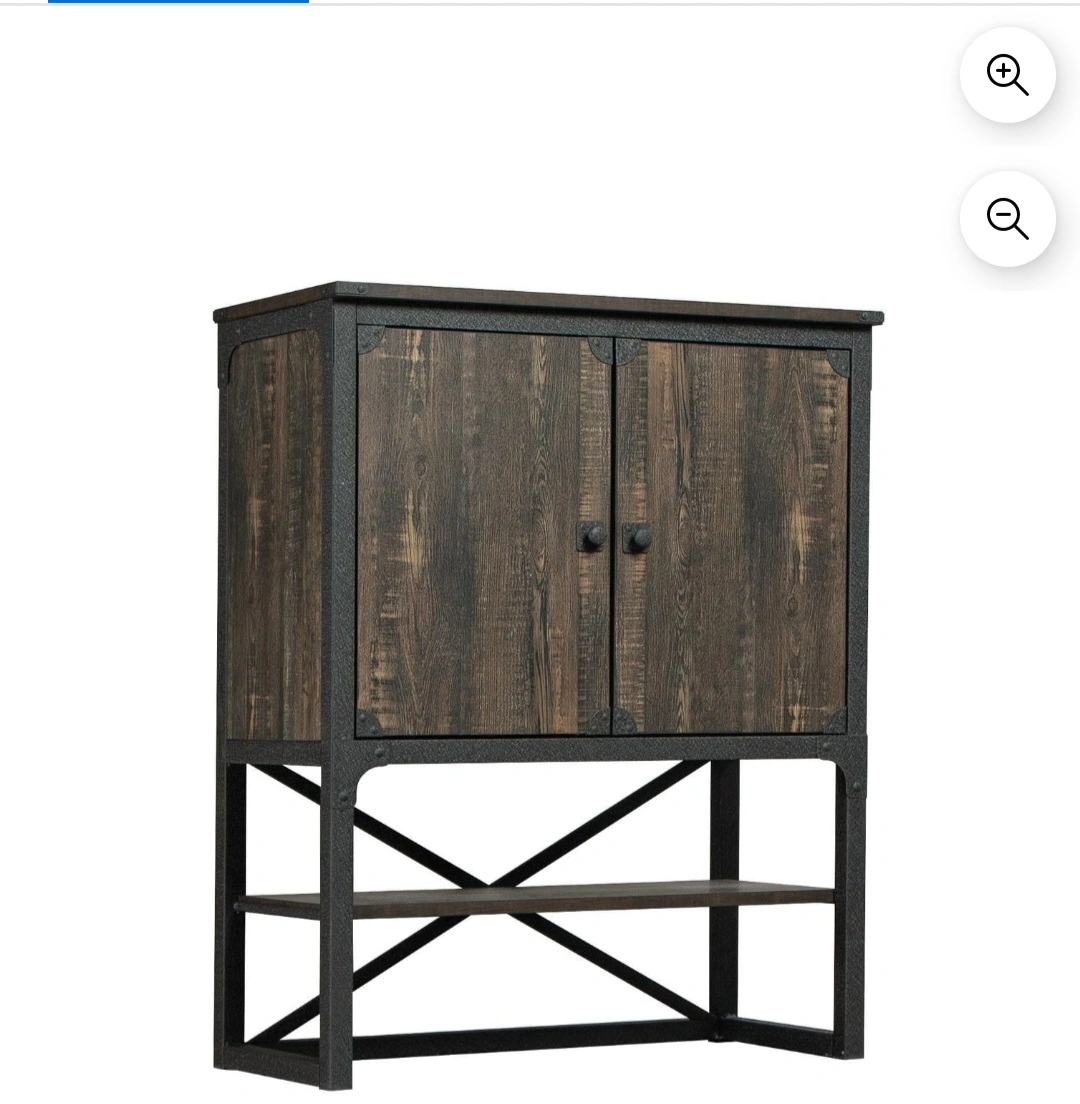 Selling a rustic accent cabinet with a wood and metal design. It features a cabinet with doors and a shelf below, perfect for adding storage and style to any room. It's in great condition!