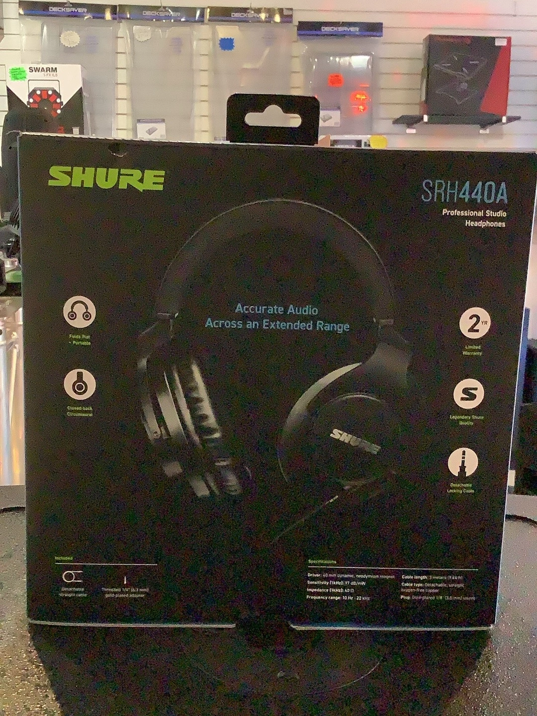 Selling a brand new pair of Shure SRH440A professional studio headphones! These headphones offer accurate audio across an extended range and are perfect for studio recording and content creation. They feature a closed-back design for noise isolation and are foldable for portability. The box is included!