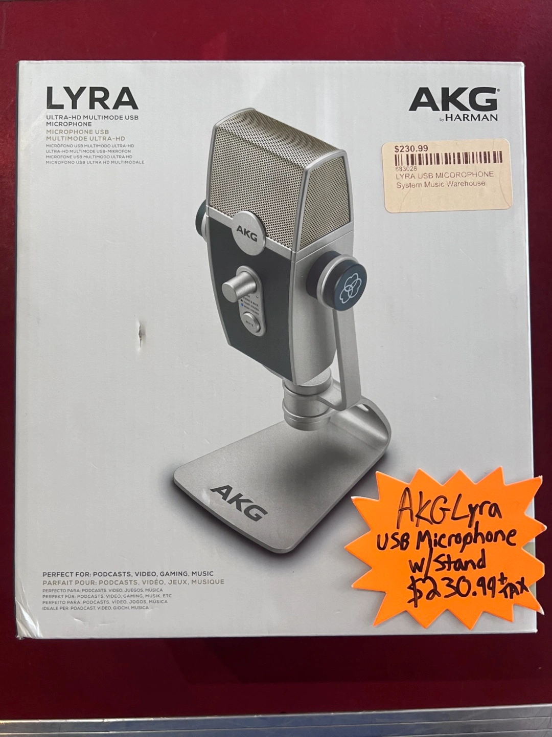 Selling an AKG Lyra USB Microphone with stand in excellent condition! It's perfect for podcasts, video, gaming, and music. The box is included.